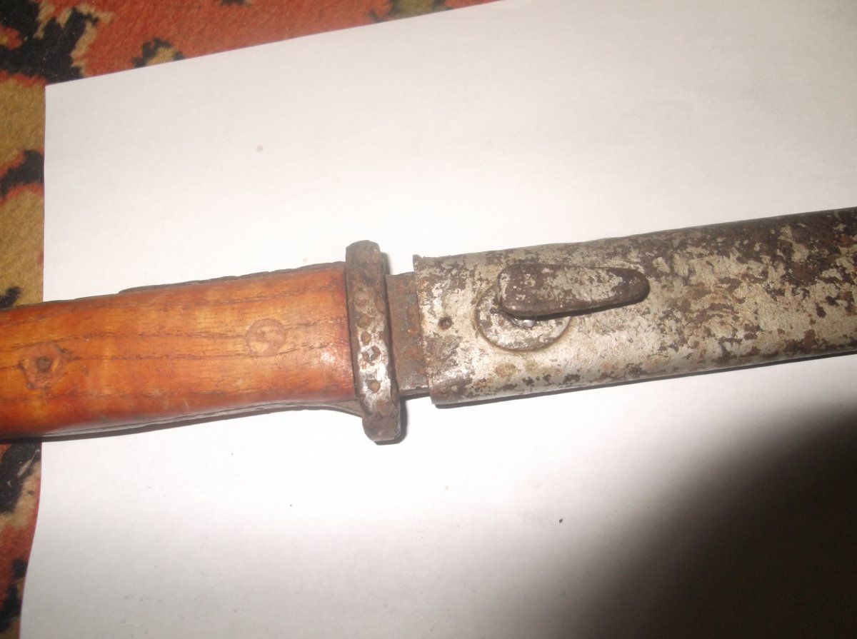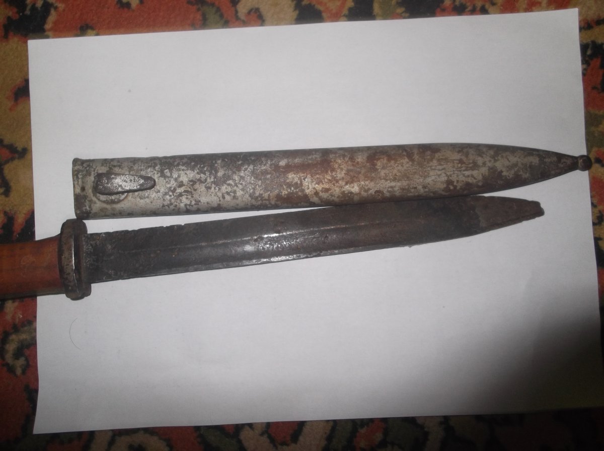 ножны цена 300 грн, чердачный сохран, есть две незначительные вмятины, крючёк был отломан, припаян оловом, на фото штык немец в комплект не идёт, только ножны, если нужны доп фото пишите сброшу.