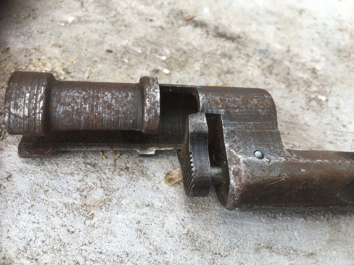 Доброго здравия! товарищ просит оценить такие предметы. Ножны сарайного хранения, возможно ранний коп. штык был складской, но хранился в сарае и пошла поверхностная ржавчина.