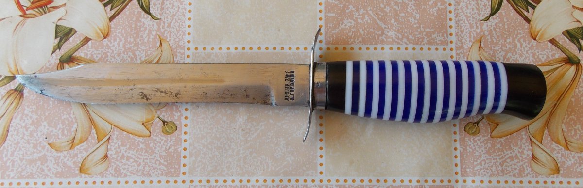 Доброго времени суток. Есть у товарища вот такой чудо-нож . Насколько я понял, военных лет , производства артели "Красная Заря" , деревня Городищи. Хотелось бы прочесть мнение специалистов в теме - прав ли я , а также насколько предмет редкий и сколько примерно может стоить на текущий момент . Заранее спасибо нашедшим время ответить.