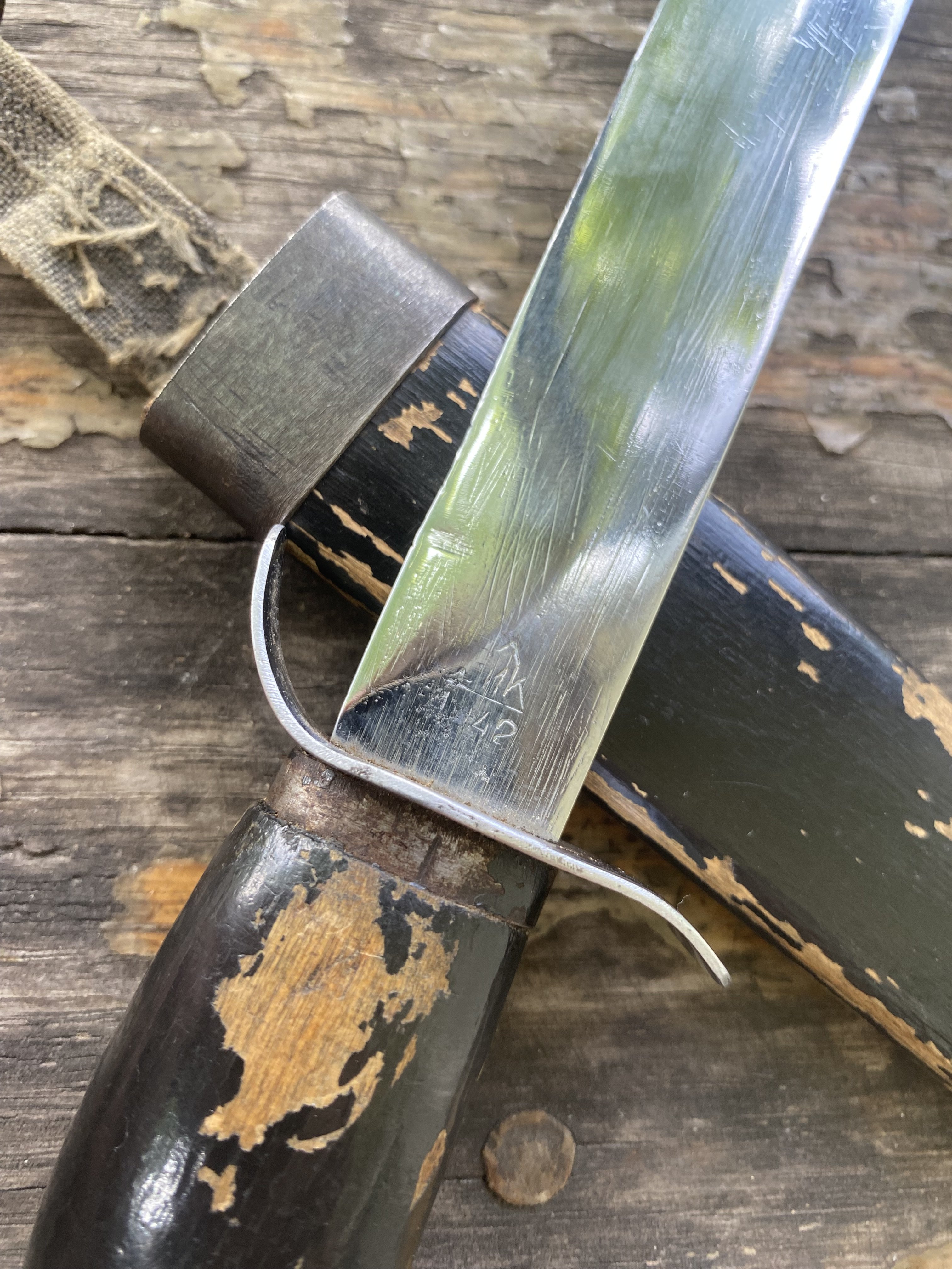У нас на складе в части на ВВ хранились НР 40, все одной партии штук 50 наверно. На очередной день победы и по случаю приезду в ГСВГ ветеранов, на показуху их разрешили достать. Так из одной партии были различия в месте маркировки и были со штампом приемки и без. Бабы и дети их клепали, иногда с консерваторским образованием. Уже в 2000 е держал в руках оригинал и подделку, хрен отличишь. Фото для определения надо конечно по лучше. Клинок кто-то убил вместе с клеймом, если это оригинал.