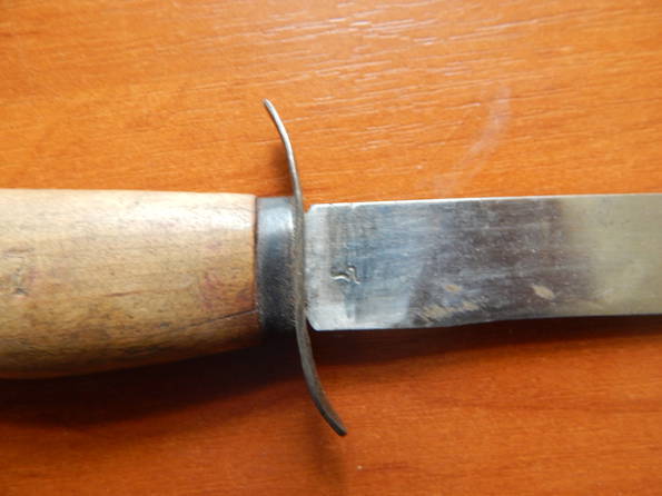 По ножу ТС из минусов: 1.Клин укорочен на 1см, 2.Режущая кромка ушла, 3.Место соприкоснавения гарды и клинка стремное,хотя по фото расклёп нормальный но рукоять на мой взгляд явно не отсюда(это мое личное мнение), 4.Кольцо по фото вороненое и гарда тоже,потому делаю вывод что рукоять с кольцом и гардой от послевоенного(посмотрите на гарде есть ли клейма.Повторяюсь это лишь мое предположение по представленым вами фото)... По плюсам: 1.Клин оригинал. Ну и на конец по цене... Думаю 500грн...
