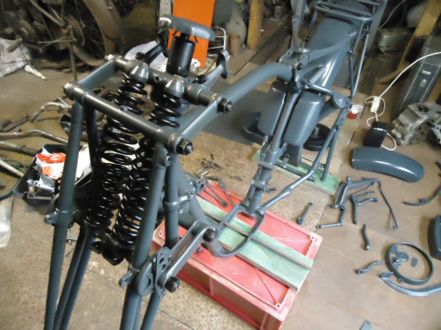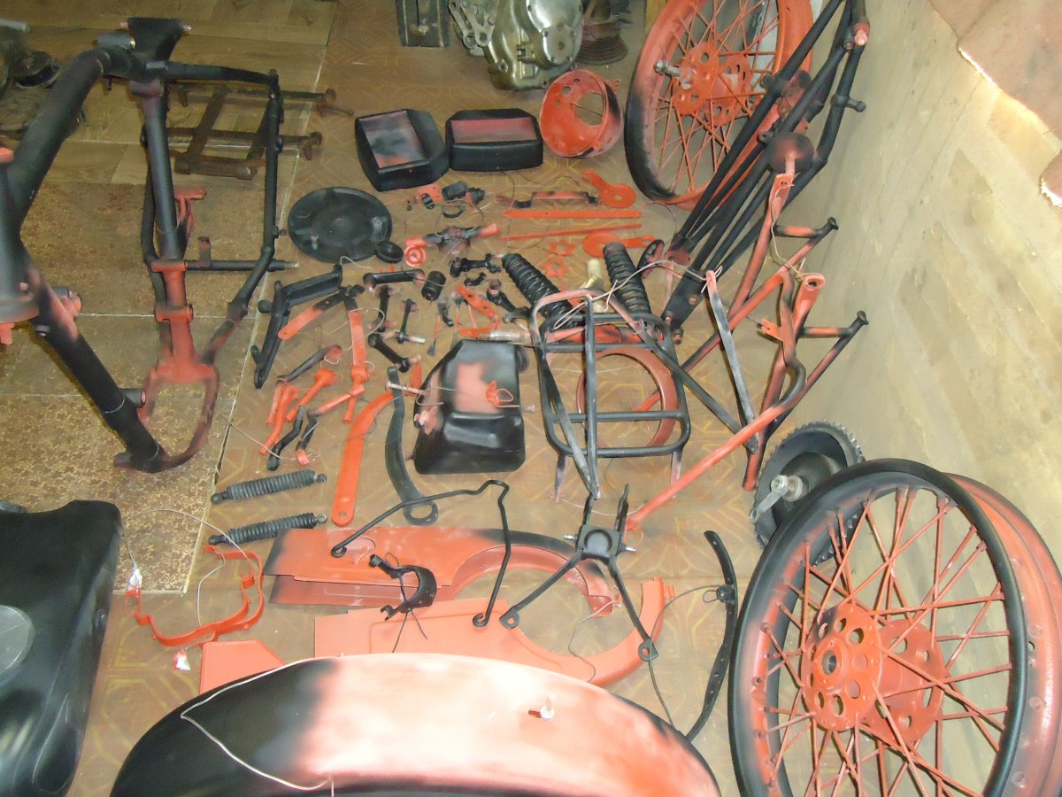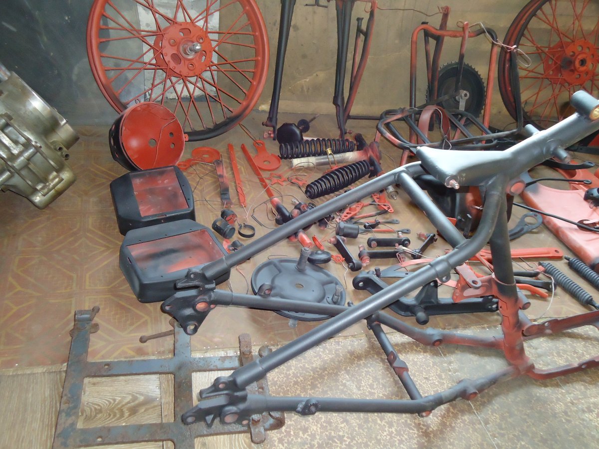 Вот мои старые фото когда этот мотоцикл, я поставил на колеса и сделал черновую сборку. до этого времени некоторые запчасти которые были с дефектами заменил на хорошие.