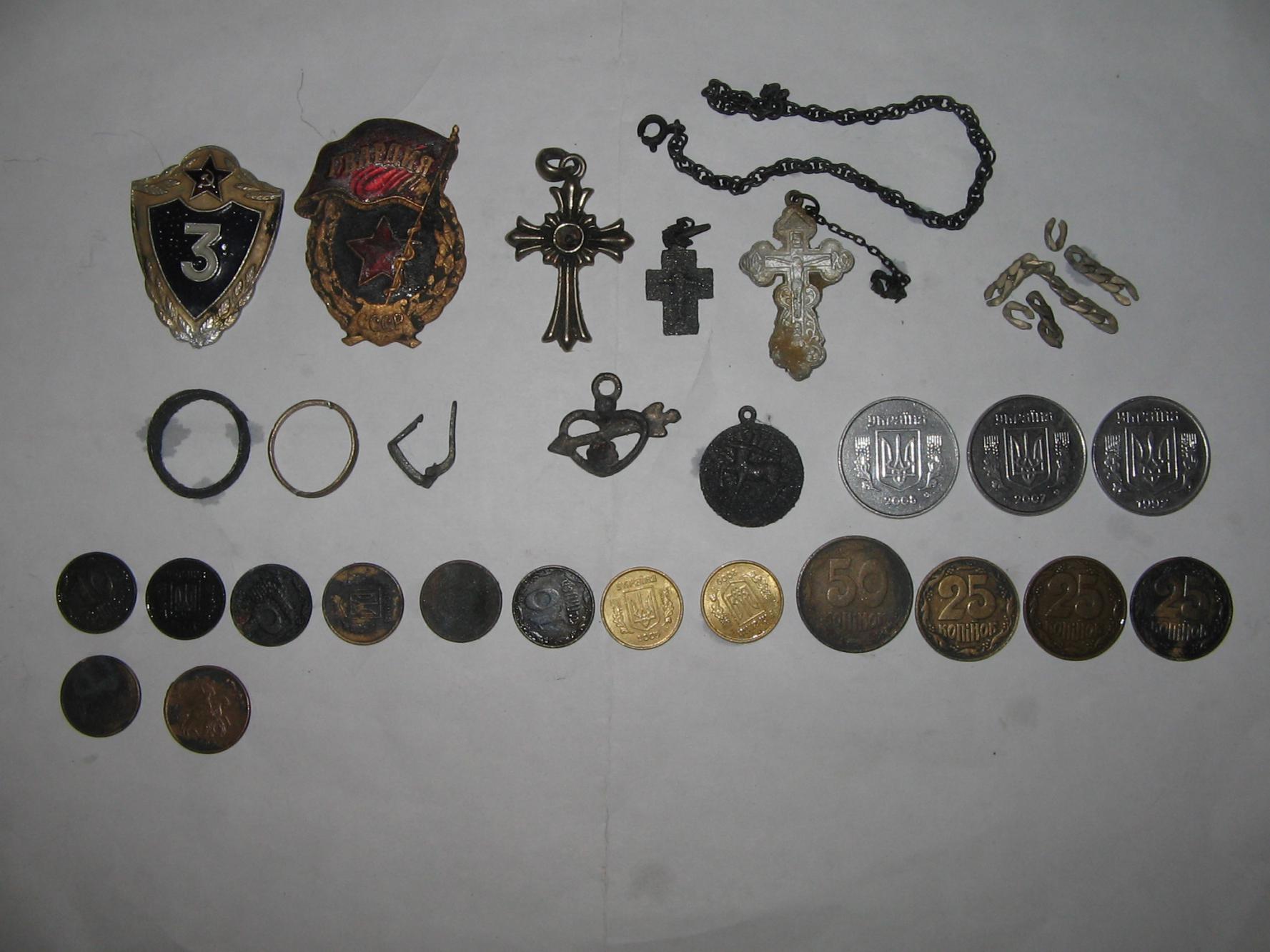 Сегодня денек выдался солнечный но холодно было. Все равно решил съездить на старые места. Руки чуть не отморозил к концу дня. Вода уже замерзает на озере. Чувствую нужно до весны ложиться в спячку "Правильного" металла не попалось но и пустым не ушел домой. Удивили значки. Лежали в совсем разных местах друг от друга.