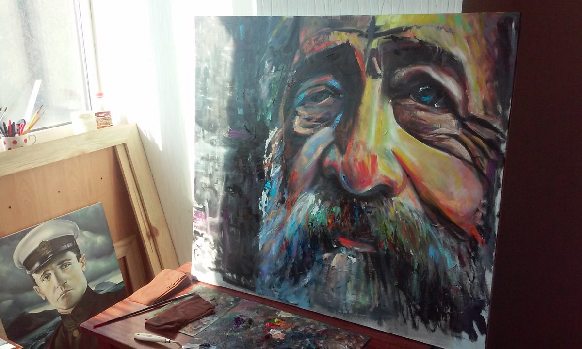 Да само лицо это пока так, набросок. Для меня важно передать взгляд - он очень добрый не смотря на то все дерьмо, что свалилось на человека. Это бомж, но взгляд на фото на столько добрый и чистый, что я реально охренел!!!! Да, да, именно так! Я был так тронут, что я решил его написать. Будет готова, я покажу. Я был удивлен, мягко говоря.... Как бы мелочь, кто-то и внимания не обратит, но меня задело. Я за пару часов это написал, настолько был на эмоциях.