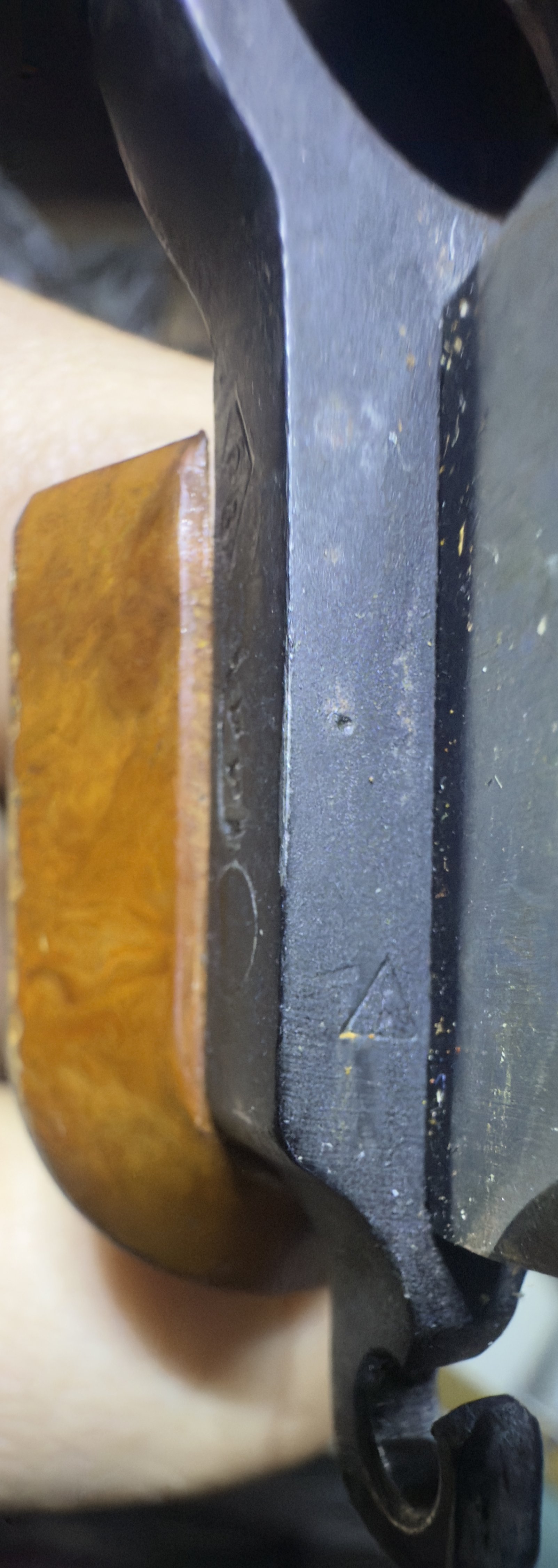 Клинок - 6х4, іжевського виробництва, першого покоління (кільце з хрестовиною фрезероване), до 1972 року. Оскільки на хрестовині немає номера, то штик, швидше за все, із запасних. Не прив'язаний до автомата. Рукоятка може бути рідна, а може - ремонтна, без детальних фото не скажу. Оскільки піхви тульські, то це просто ніхто не заморочувався при закладанні на склад і переплутав. Або не було в наявності рідних.