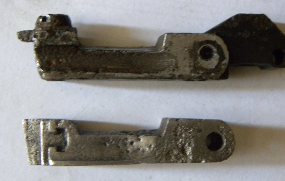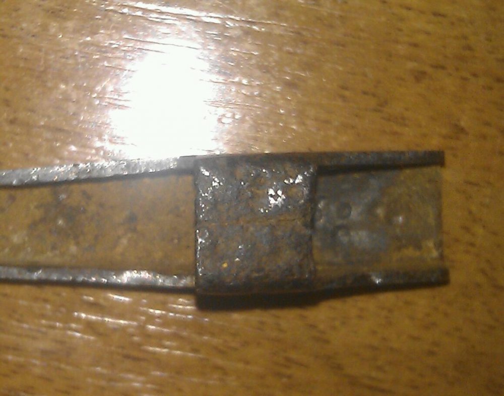 База прицельной планки. Как видно на фото 1 была не ах ти, сплошной комок ржавчины. Поработав над ней уксусом, сварочником и прочими инструментами, получила свою форму. Раковинки некоторые оставил из за того что прицельная планка коп и смысла базу делать под идеал нет.