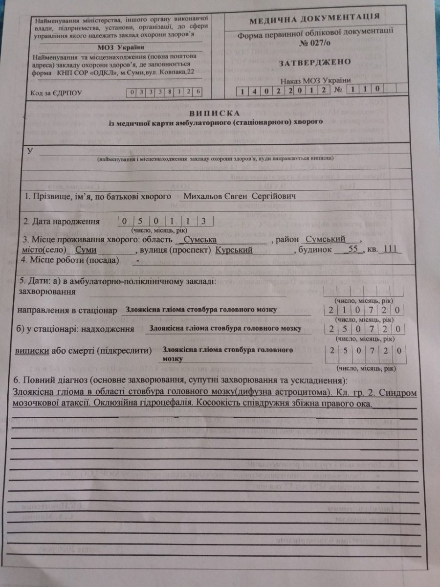 Здравствуйте камрады,срочно нужна помощь ребенку нашего форумчанина yudik81,диагноз злоякісна гліома в облості стовбура головного мозку,дорогостоющее лечение.Тел. Мами 0661660734. Карта пб.4731 2191 0575 6294 Михальова Оксана Николаевна.Заранее благодарен все откликнувшимся.Тема обговорена с администрацией!