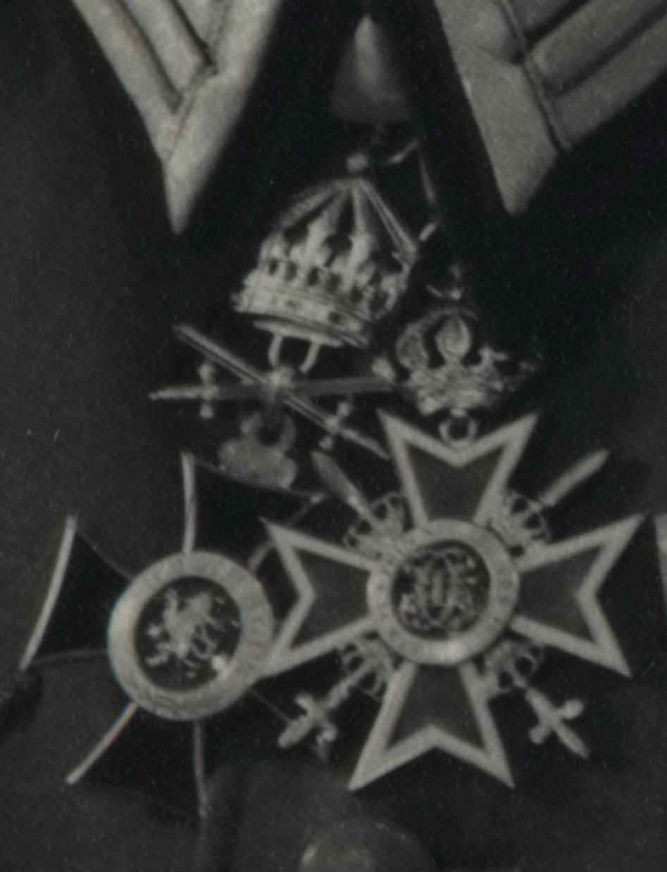 «Шейники» - сами по себе редкость, а тут целых два штука:~) Неизвестный оберстарцт с двумя «шейниками»: - Болгария. Орден Святого Александра. Командор с мечами (для военных лиц, за заслуги в мирное время) - Румыния. Орден Короны. Командор с мечами & короной (специальный воинский статус 22 февраля 1938 г.). II тип (1932-1947) Ордена крупно: Награды на планке: 1. Шпанга 1939 года к Железному кресту II класса 1914 года 2. Железный крест II класса 1914 года 3. Мекленбург-Шверин. Крест Военных Заслуг II класса 4. Мекленбург-Шверин. Орден Грифона. Рыцарь 5. Почетный крест 1914-1918 для комбатантов 6. Крест «За верную службу» в Вермахте за 18/25 лет 7. Медаль «За верную службу» в Вермахте за 4/12 лет 8. Медаль в память 13 марта 1938 года 9. Медаль в память 1 октября 1938 года 10. Турция. Орден Железного полумесяца
