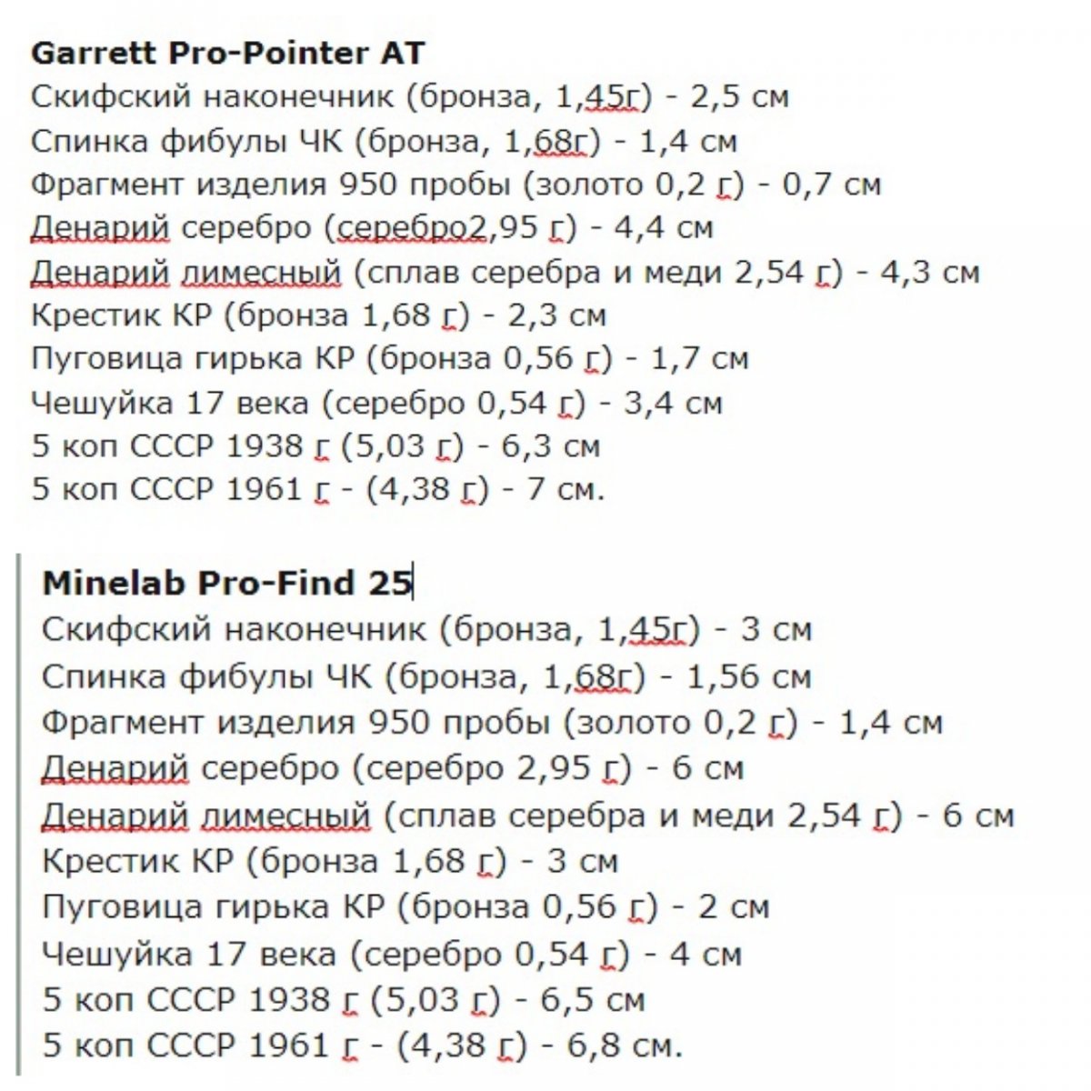 Я сравнивал Minelab Pro-Find 25 с XP Mi-6 и с Gаrrett Pro-Pointer AT. Пин Ми-6 чувствительней, чем Майнлаб, а тот в свою очередь более чувствительный чем Гарретт "морковка". Вот только я не сравнивал "морковку" со старым Про-Поинтером, но думается - это лишнее. Разница в замерах заставляет почухать потылыцю... Итак, Гарретт Про-Поинтер АТ против Майнлаб Про-Файнд 25: Как то так... Выводы: пин Ми-6 трошки получше Майнлаба, про Гарретт я даже и не говорю...