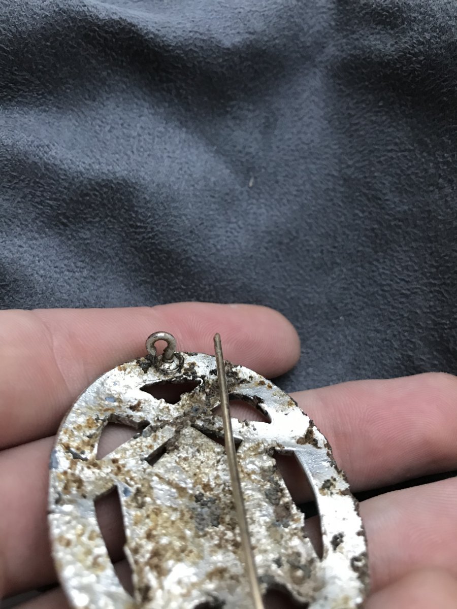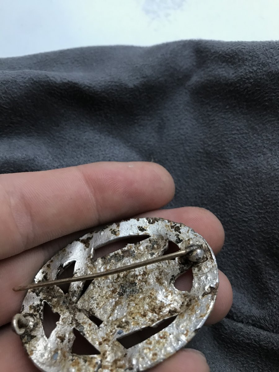 Доброго дня! Допоможіть з оцінкою знаку, буде продаватися. Свіжа лісова знахідка. З лісу просто помитий водою і мякою зубною щіткою. Багато збереглося посріблення. З пов. Макс