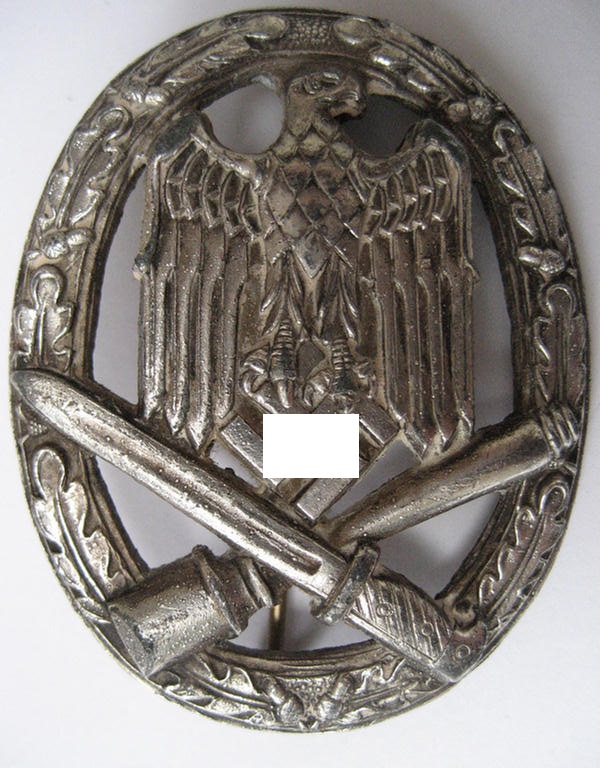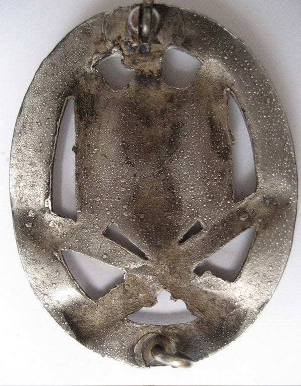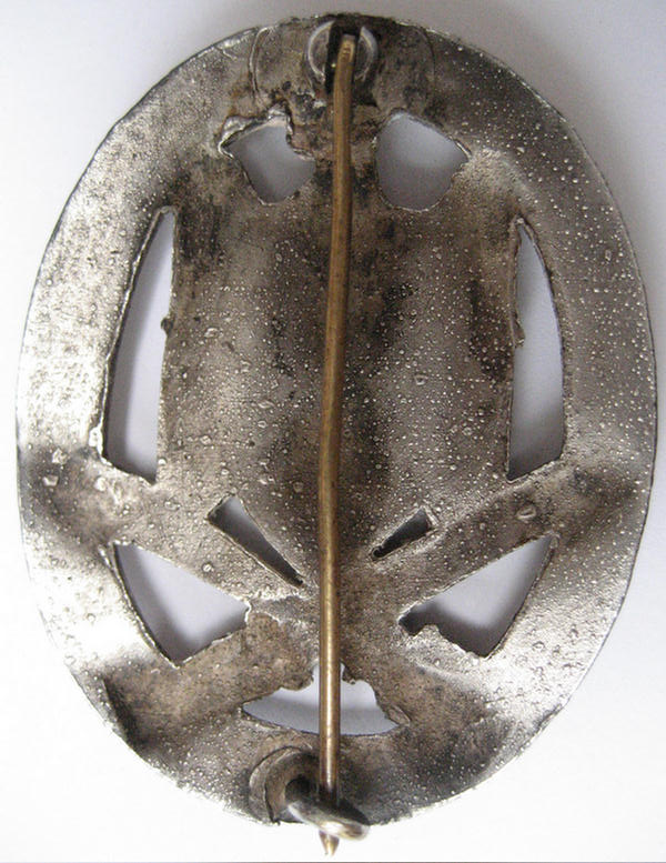 Это хороший пример, Знак "Allgemeines Sturmabzeichen, Это один из не клеймёных но весьма красивый знак. 'имеет красивую патину благодаря своему возрасту. Знак сохранил свою оригинальную серебристую отделку. не очищен ни полирован, и показывает очень подробный рельеф. Хороший и честный знак! € 300