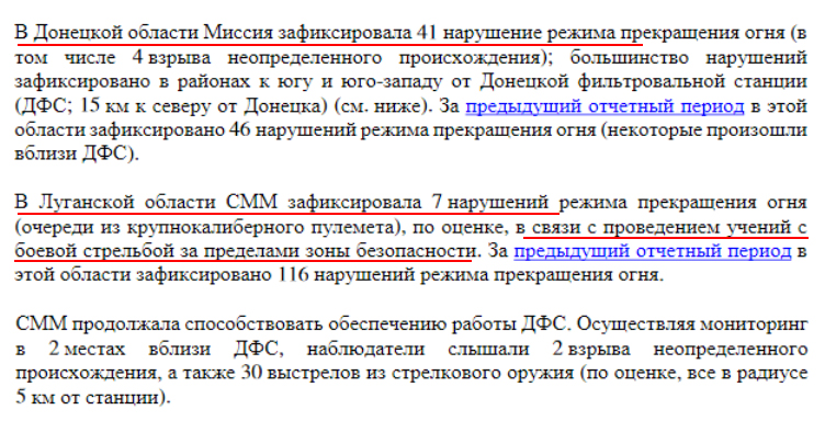 ОБСЕ зафиксировала больше 230 нарушений перемирия за сутки на Донбассе Специальная мониторинговая миссия ОБСЕ в течение прошлых суток зафиксировала 234 нарушения режима прекращения огня на Донбассе. Из них - 232 произошли в Донецкой области. Об этом говорится в ежедневном отчете СММ ОБСЕ в Украине. В частности 68 взрывов неопределенного происхождения, из которых 162 произошли в районах на северо-запад от н. п. Широкино (подконтрольный правительству, 100 км южнее Донецка). В Луганской области Миссия зафиксировала два нарушения режима прекращения огня (взрыва неопределенного происхождения) в районах к западу от н. п. Зимогорье (неподконтрольный правительству, 27 км на запад от Луганска).