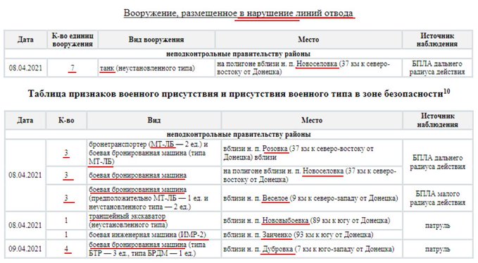 СЦКК: Противник розміщує «Гради» з порушенням лінії відведення та встановлює свої камери відеоспостереження Українська сторона СЦКК повідомляє про чергові грубі порушення з боку збройних формувань Російської Федерації, про що йдеться у звіті СММ ОБСЄ № 90/2021 від 20 квітня. Патрулі СММ ОБСЄ і далі продовжують фіксувати озброєння найманців РФ, яке розміщене з порушенням ліній відведення. Про це інформує пресслужба ООС. Спойлер Зокрема, 19 квітня, поблизу населеного пункту Хрустальний, виявлено 15 реактивних систем залпового вогню БМ-21 «Град». На аеродромі біля Переможного зафіксовано скупчення військової техніки, а саме 7 реактивних систем залпового вогню БМ-21 «Град», 8 самохідних гаубиць 2С1 «Гвоздика», 10 причіпних гаубиць 2А65 «Мста-Б», 5 гаубиць Д-30 «Жаба» та 13 танків (7 – Т-72 та 6 – Т-64), що розміщувались за межами виділених місць зберігання. У Звіті зазначено, що збройні формування Російської Федерації з метою перешкоджання роботі Місії продовжують вести вогонь зі стрілецької зброї у напрямку БПЛА ОБСЄ. Під час виконання польоту у районі Петрівського, що на тимчасово окупованій території Донецької області, патруль СММ зафіксував 5 пострілів зі стрілецької зброї у напрямку БПЛА. Також було зафіксовано глушіння сигналу GPS літальних апаратів, що суттєво ускладнило роботу СММ. За оцінкою Української сторони СЦКК перешкоджання роботі СММ ОБСЄ з боку російських найманців набуло систематичного характеру, а затримки та заборони допуску патрулів СММ до місць або об’єктів в ОРДЛО вказують на намагання окупантів приховати різноманітні порушення. Дії збройних формувань Російської Федерації стають все більш зухвалими, на що вказує випадок, який стався 17 квітня. У цей день окупанти, попри заборону з боку СММ ОБСЄ, встановили дві камери відеоспостереження на щоглі системи відеоспостереження Місії, яка розміщена на території шахти «Октябрьская», на околиці тимчасово непідконтрольного Україні Донецька. При цьому окупанти обмежили доступ до камери Місії, відрізавши частину металевої драбини на щоглу. 19 квітня оператори СММ ОБСЄ відключили свою систему відеоспостереження для уникнення подальшого втручання у моніторинг. Наразі Місія з’ясовує обставини цих порушень з боку окупантів. Патрулі СММ ОБСЄ за допомогою БПЛА продовжують фіксувати раніше облаштовані та нові мінні загородження збройних формувань РФ в ОРДЛО. 13 квітня, неподалік населеного пункту Олександрівка, БПЛА Місії вкотре зафіксував 80 протитанкових мін між населеним пунктами Мар’їнка та Кремінець. Того ж дня на околиці Оленівки вперше зафіксовано 71 протитанкову міну та 3 міни на дорозі до Славного. А 16 квітня, в цьому ж районі, БПЛА зафіксував ще 65 мін між залізничними коліями, 56 протитанкових мін неподалік у полі та ще 42 міни за 500 м від зазначеного місця. Такі дії збройних формувань Російської Федерації дестабілізують обстановку вздовж усієї лінії розмежування та слугують основою для фабрикування провокацій з метою дискредитації ЗС України в очах місцевого населення. Укотре наголошуємо, що підрозділи Збройних Сил України знаходяться на позиціях і неухильно дотримуються зобов’язань, щодо всеосяжного режиму припинення вогню, які були досягнуті в рамках Тристоронньої контактної групи.