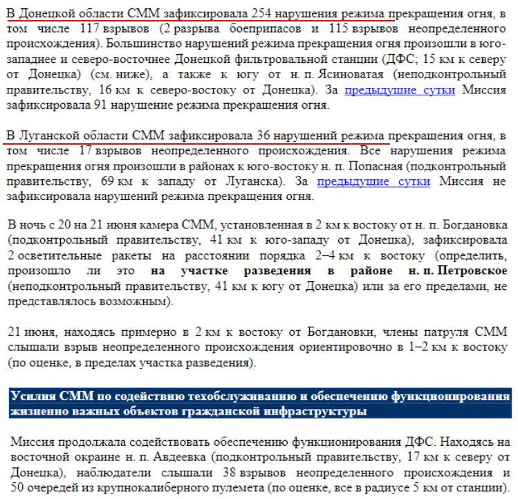 Українська сторона СЦКК Українська сторона СЦКК повідомляє про чергові порушення ЗФ РФ та їх найманців Додаткових заходів щодо посилення режиму припинення вогню від 22.07.2020, зокрема - пунктів "про заборону на застосування вогню" та "про заборону на розміщення важкого озброєння в населених пунктах і їх околицях". Окупанти продовжують вести обстріли із застосуванням заборонених видів озброєння. Зокрема, 26 червня в період з 06:40 до 09:30 було зафіксовано три обстріли з боку позицій ЗФ РФ, що знаходяться в районі окупованих населених пунктах Заїченко та Пікузи у напрямку сільськогосподарських угідь населених пунктів Гнутове та Талаківка. Обстріл здійснювався із застосуванням мінометів калібру 120 мм (18 мін) та 82 мм (4 міни). Під час верифікації, проведеної спостережною групою УССЦКК, дослідження вирв, розриву снарядів і решти фрагментів від боєприпасів, встановлено факт застосування кремлівськими найманцями артилерійських систем калібру 120 мм. Фрагменти від снарядів свідчать про застосовування боєприпасів типу ЗОФ49 з підривником 3В35, які зняті з озброєння збройних сил Російської Федерації через закінчення терміну придатності. Вищезгадані боєприпаси постачаються РФ для незаконних збройних формувань, які мають на озброєнні гармати 2Б16 “Нона-СВК” російського виробництва з метою їх утилізації. Варто зазначити, що 2Б16 "Нона-СВК" на озброєнні Збройних Сил України не перебуває. Використання збройними формуваннями Російської Федерації забороненого озброєння викликає серйозну стурбованість, оскільки це несе пряму загрозу життю та здоров'ю військовослужбовців Об’єднаних сил та мирного населення. Дії такого роду свідчать про явне небажання ЗФ РФ дотримуватися досягнутих угод і спрямовані на ескалацію напруженості по всій лінії розмежування сторін. Про всі порушення режиму припинення вогню Українська сторона СЦКК проінформувала СММ ОБСЄ.