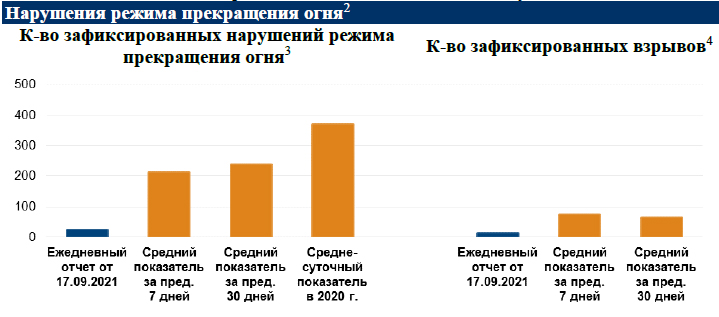 У вересні в зоні ООС - найбільша кількість порушень "тиші" з початку "перемир'я", - ОБСЄ У вересні кількість порушень режиму "тиші" на Донбасі сягнула найвищого значення з липня 2020 року, коли було підписано останню угоду щодо припинення вогню Про це йдеться в повідомленні для преси Спеціального представника місії ОБСЄ в Україні та у Тристоронній контактній групі Мікко Кіннунена. "Ситуація у сфері безпеки нестабільна: у вересні в середньому реєструється понад 250 порушень режиму припинення вогню за день. Особливу стурбованість викликає велика кількість жертв серед цивільного населення внаслідок обстрілів і стрілянини. У вересні 2021 року ці цифри досягли найвищого показника з липня 2020 року, коли було вжито заходів для припинення вогню", - заявив Кіннунен. Політична робоча група ТКГ продовжила дискусії, пов'язані з розробкою проєкту плану дій відповідно до Мінських угод, а також подальших кроків. "Учасники намагаються знайти способи усунути перешкоди, які залишилися на шляху до відкриття нових КПВВ в районі Золотого і Щастя", - заявив Кіннунен. Він додав, що економічна група займалася питанням водопостачання.
