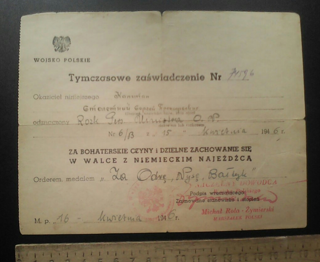Ух ты, За Одер, Нису и Балтику, не частая среди наших солдат награда, лично я не встречал в наших таких, только в читал об этом.