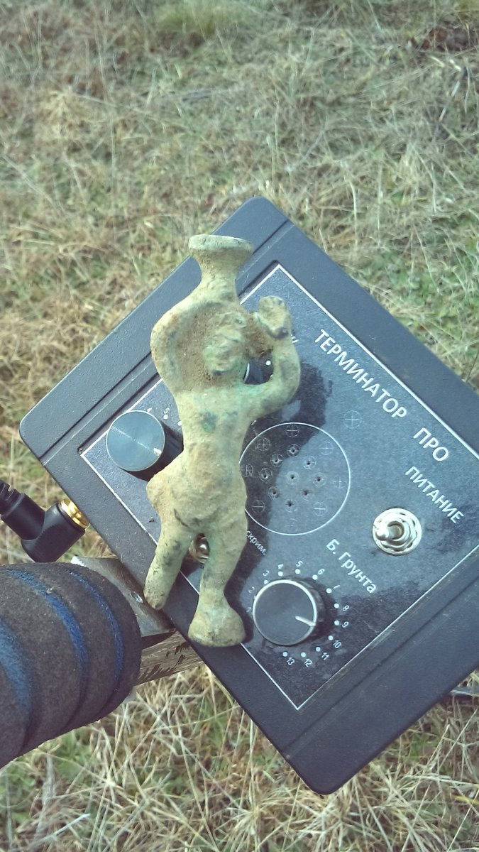 Не глубоко,до штыка.Ездили четверо-три Дэуса,и я с Термом.Товарищ ещё голову нашол похожую что у моей фигурки.По монетам тоже уменя 5 штук-крейцера,у товарища одного три,а двое голяк,место выбитое не раз.