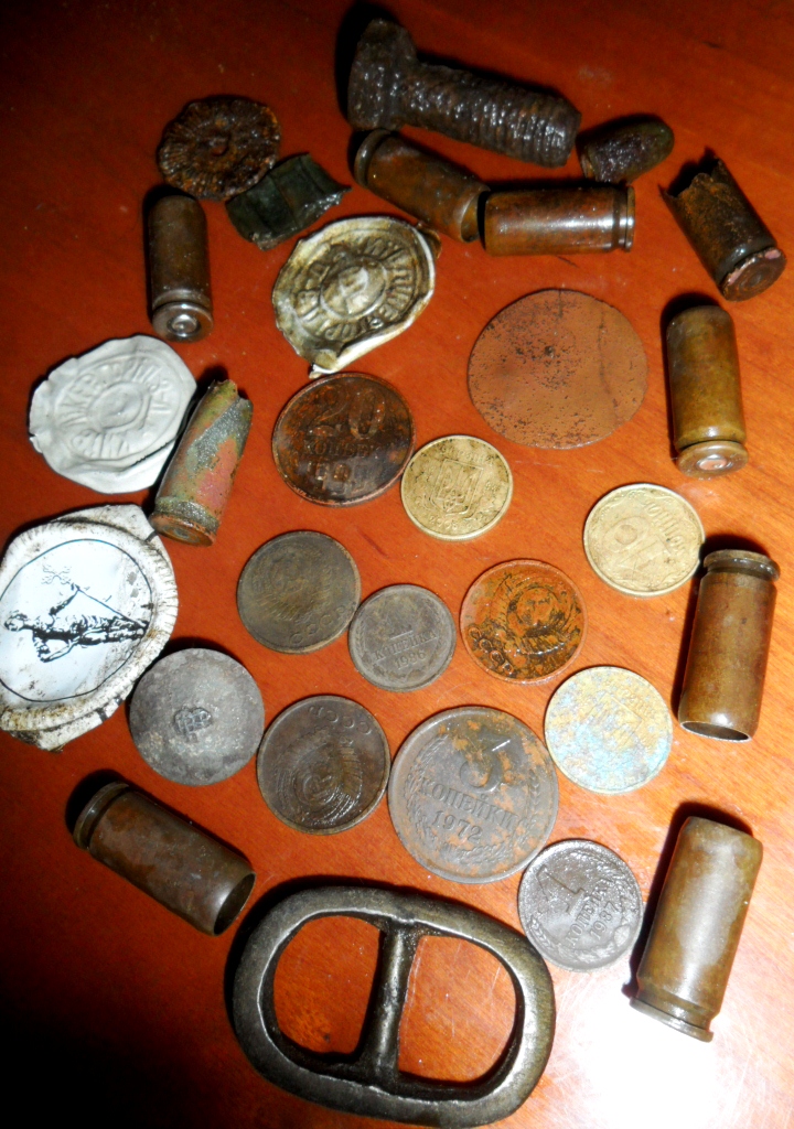 Приветствую вас камрады.Стал и я обладателем девайса Терм Про.Сказать,что прибор хорош,значит не чего не сказать.Прибор бомба!!! Очень понравилось разделение целей,глубина класс,ну в общем сказать доволен как слон:D:beer:.После двух ознакомительных выходов и дистанционной настройки с легендарной Одессы прибор так лег в руку,что жена долго еще не могла загнать меня домой:D.Ну и первые находки буквально за час копа.Вырвался на обеденном перерыве. Денис вам отдельное огромное спасибо за прибор:beer:.[​IMG]