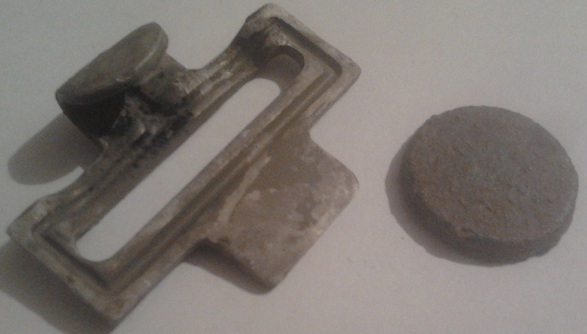 По войне из интересного нашел крючок ремня Ассманна с элементами родной серой краски. На следующие выходные пойду в надежде на пряжку. + еще непонятный монеткообразный кусочек свинца/олова.