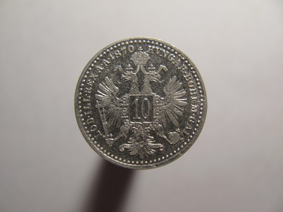 У вересні був випадок: в лісі, битому-перебитому, серед густих кущів, куди ще ніхто не додумався залізти, мій терм зловив кольоровий сигнал. Сигнал був нечіткий, часто так сигналили кусочки алюмінію та фольга і я вже було хотів йти далі, але вирішив все таки копнути....і тут з купи землі вивалюється кругляшок, на вигляд вбитий в хлам і в щільному шарі окислів, але трохи протерши від землі почав проглядатися рельєф і ці вже знайомі дві маленькі циферки 1 і 0...кругляшок виявився симпатичною монеткою в 10 крейцерів) Друге срібло і друга 10-ка, а сигналило, як алюмінька, тоді я і зрозумів, що треба копати всі спірні сигнали, а з минулої суботи - вести пошук у всіх металах, краще пізно, ніж ніколи)