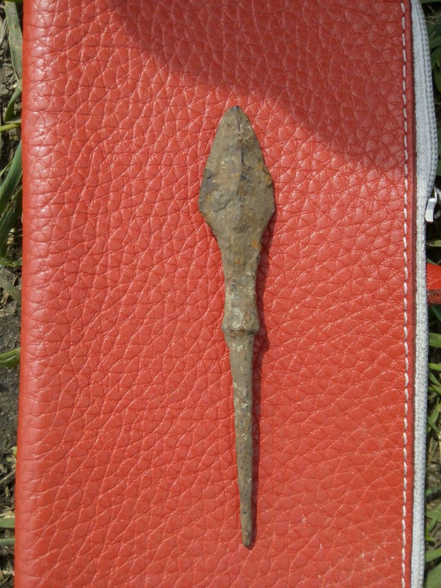 На мій непрофесійний погляд, наконечник десь орієнтовно Х ст., Русь. Такі типи називаються ніби черешковими кілевидними, але ще раз повторюсь, не спеціаліст) Дзвенів кольорі чи в чорному?