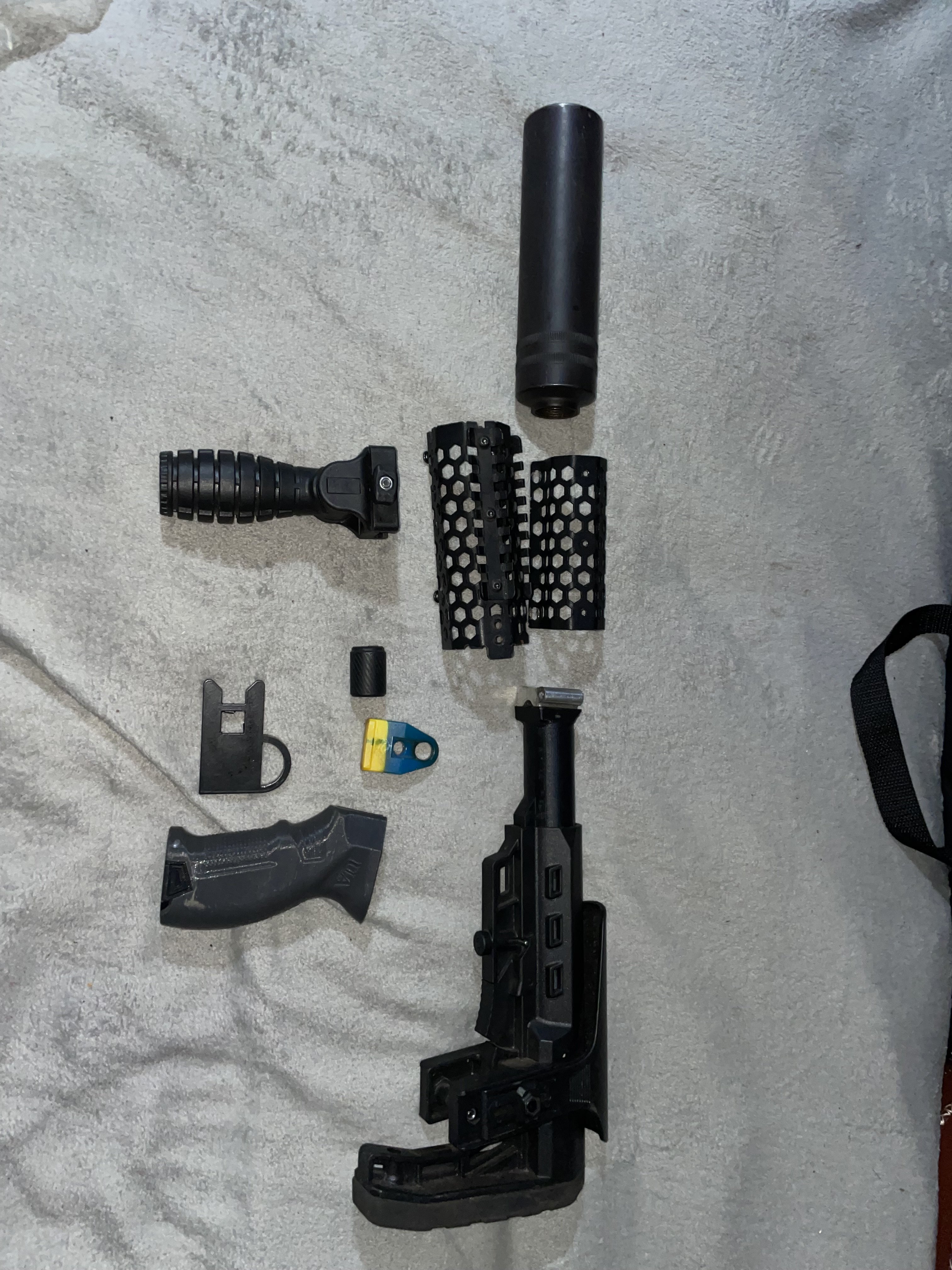 Продам комплект обвеса для АКС-74У В комплекте: глушитель FS-T1 v.2, приклад, цевье, 2 ручки переноса огня, пистолетная рукоять производства 3form.com.ua Тромикс, антабка под рукоятку, буфер отдачи Цена: 4600грн