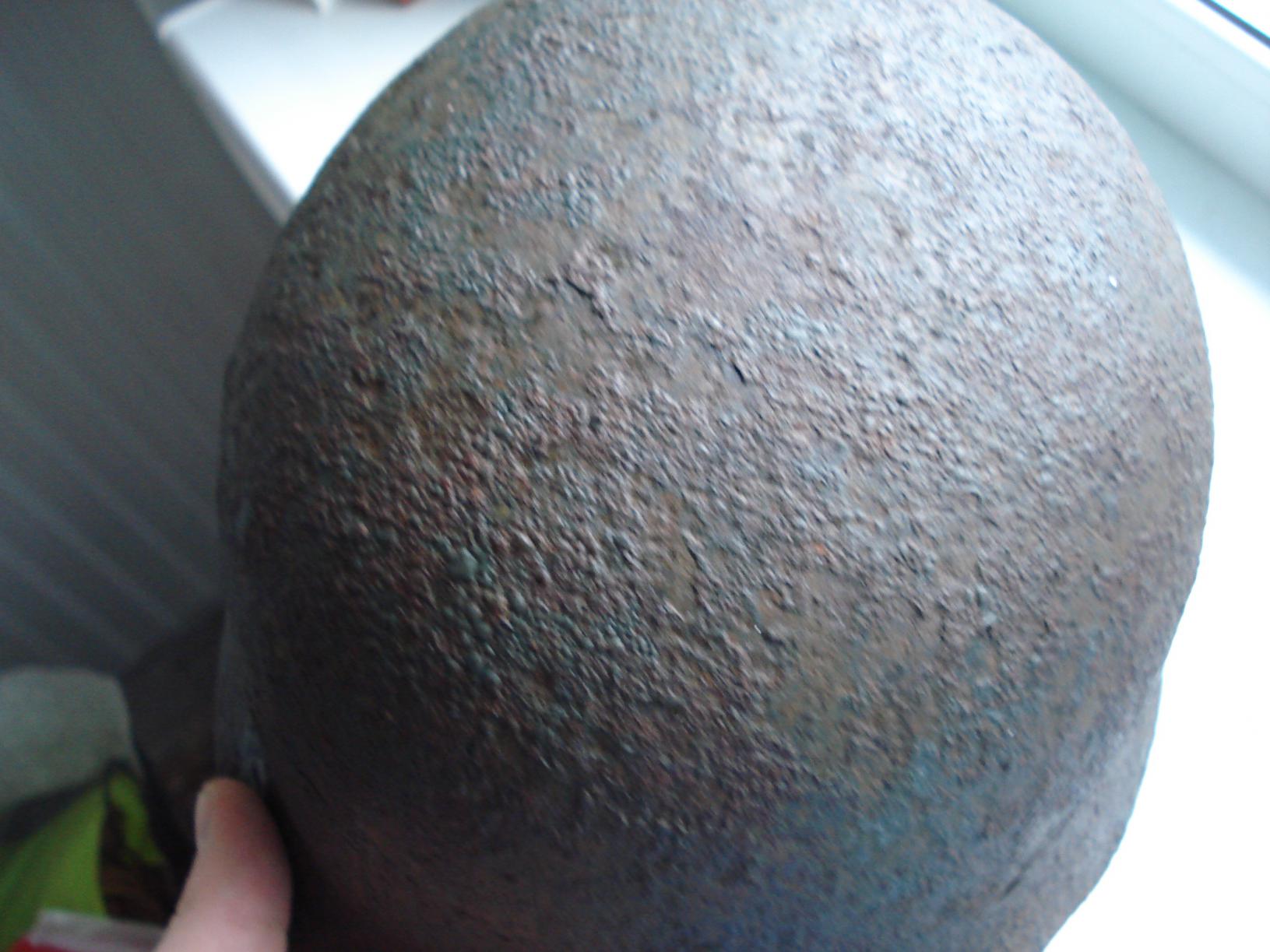 № 3) м35 размер 66 крепчайший тяжеленный касон 65 % родного окраса, 1 небольшой боевняк, никаких прогнилостей и трещин, 1 маленький свищик, почистить опять же боязно, ибо не умею. и боюсь испортить нутрянка тоже гуд.