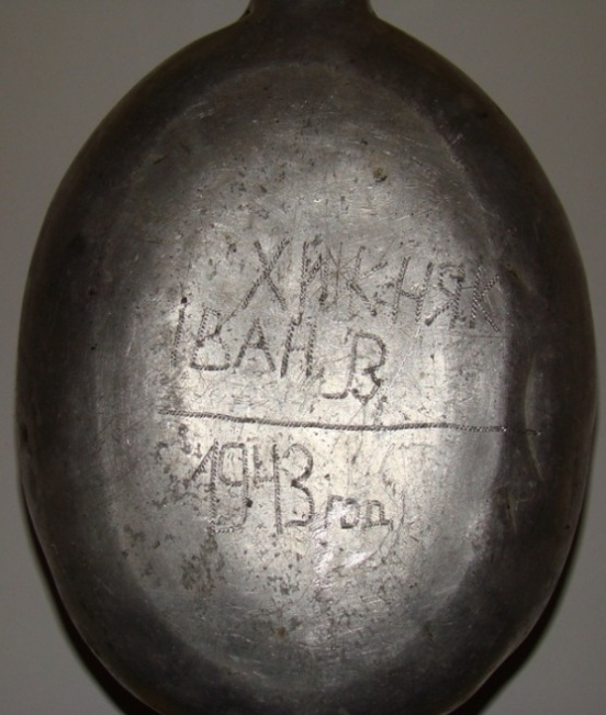Ответ: Оцените находку !!! ВОТ несколько отмытых находок 1)Ложка надпись ( МКРТИЧЯН ) я так понял это фамилия совецкого бойца. 2) одна из Фляга с надписью (ХИЖНЯК IВАН. В. 1943 год ) 3) одна из фляг с водой. Воду оставили для антуража Вопрос камрадам что это за оранжевые коробочки ???