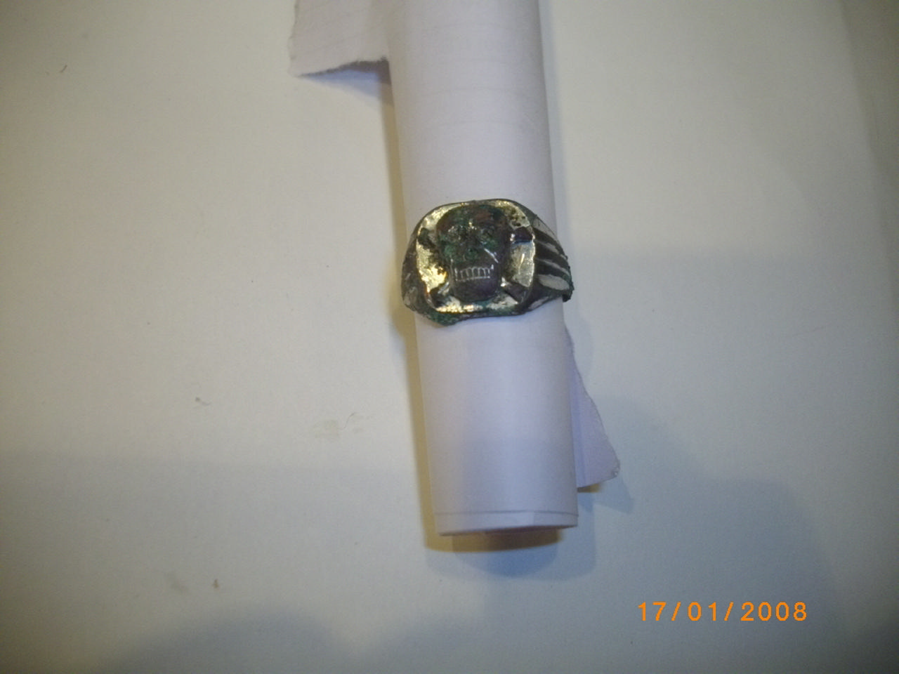 Попался вот такой перстенек с "мертвой головой". Материал - медь(когда то была посеребренная). Интересует за сколько его можно продать.
