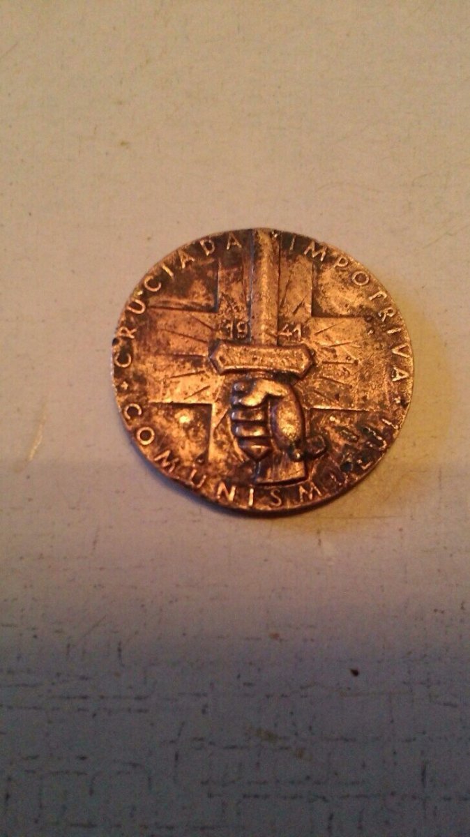 1. помогите оценить мелаль румунскую, крестовый поход против коммунизма. Ленты нет, петли тоже(
