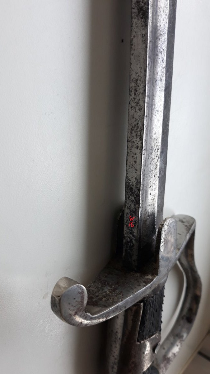 Дуже дивно. Які правила ваше повідомлення порушувало? Отже шабля артилерійська Пруська солдатська зразка 1896 року. Черен новий. Клеймо W 16, що означає 1916 рік виробництва.
