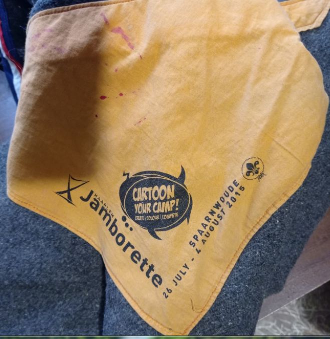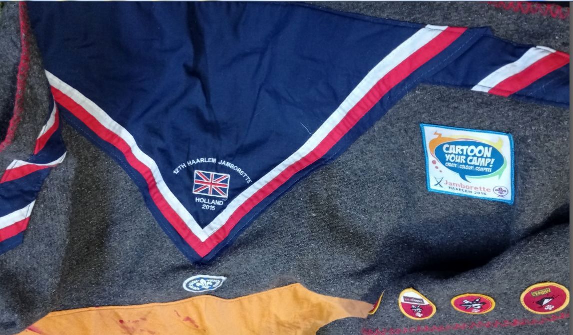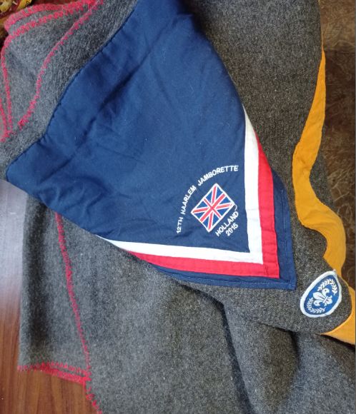 Там еще на уголок одеяла нашит галстук, по которому видно, что это британские скауты были в гостях у голландских, в Хаарлеме, в 2015 году, с 26 июля по 4 августа.
