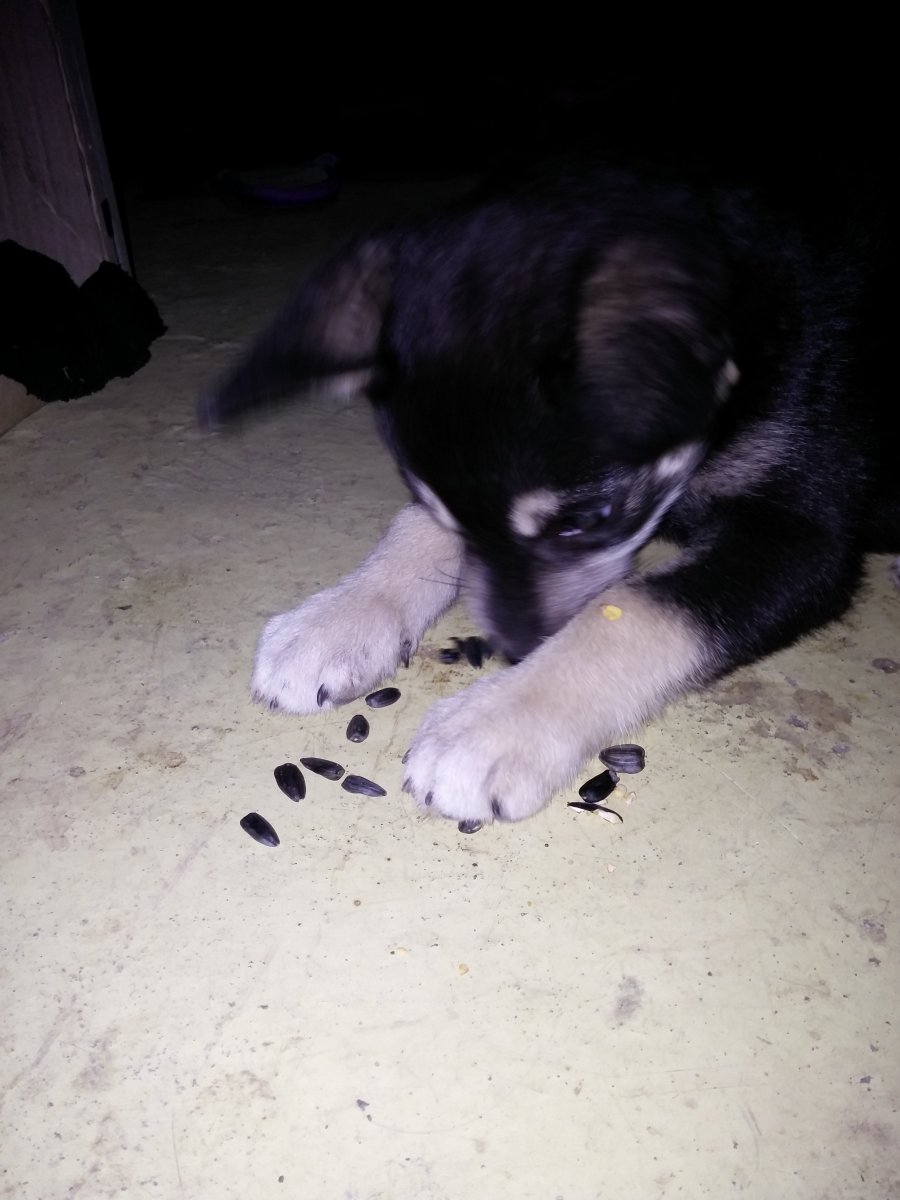 Тоже АСЬКА с характером)))Тушонку солдатскую первого сорта есть в отказе,а вот семечки на УРА.Ещё нету и двух месяцев НО фундамент под будку уже выкопала(в цветочном полисаднике).Родословной увы.....Мама хаска ,папа гострабайтер.