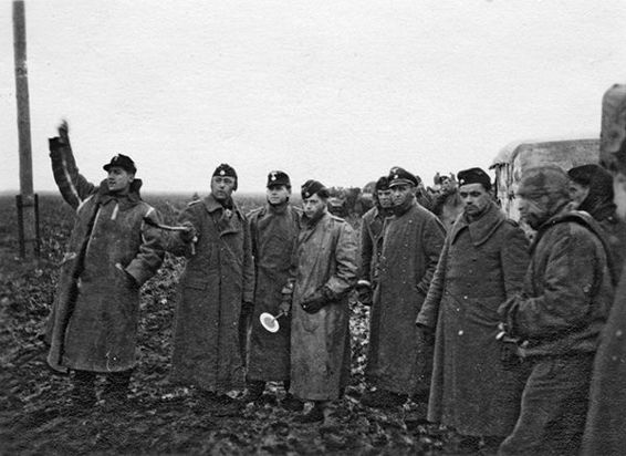 Группа офицеров Тотенкопф командует погрузкой эшелонов сообшением Ново Украинка- Балта. 12 марта 1944года.