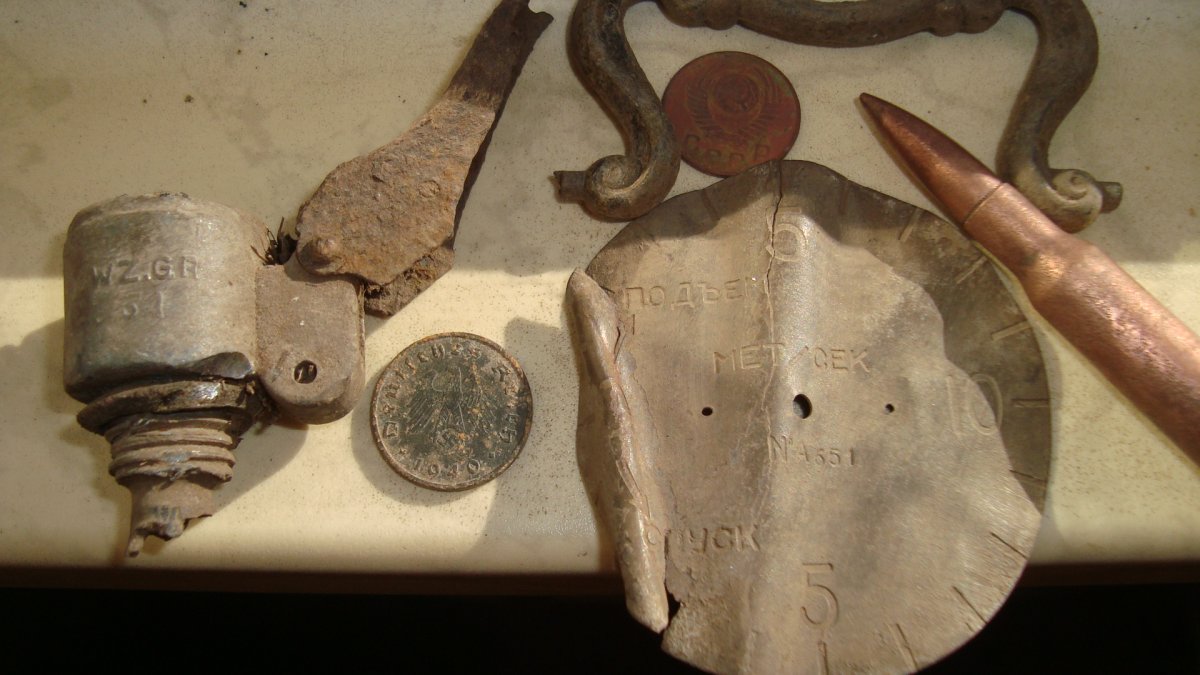 Прогулялся вчера, по выбитым местам. Почти рядом все три. Райх 40 года порадовал.Ручка похоже от мебели. Запал с целой прокладкой.Не понятная приблуда СПУСК,ПОДЪЕМ?????Моська с интересным клеймом, причем рядом .такого настрела нет .Пшеница зреет, трава ложится....