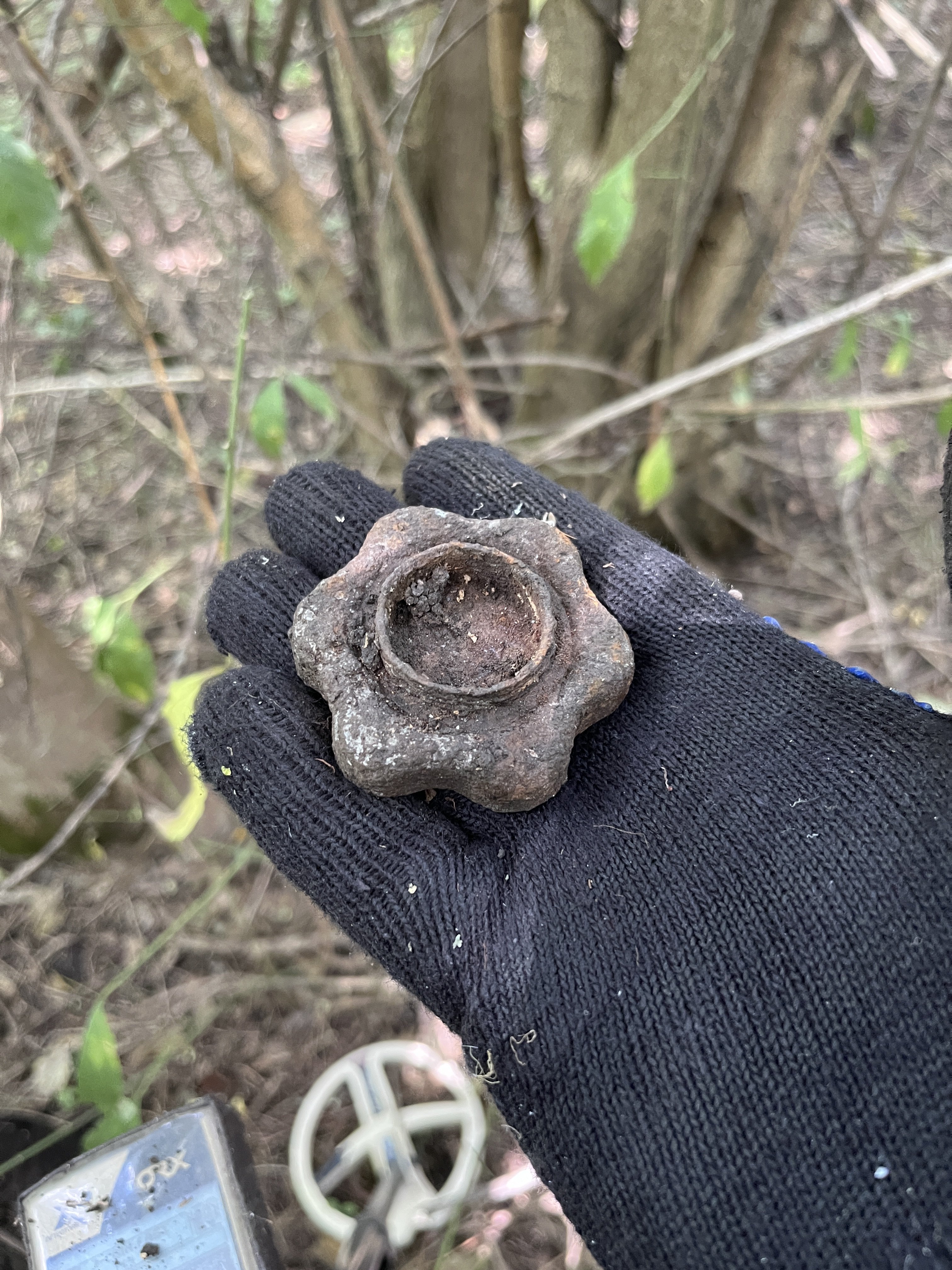 Вчера на пару часиков до дождя по посадке побегал . Вся в позициях копаных по колхозному и давно . Много нагановских стреляных ( не фотал) и так хлама по войне . Пуговки с якорями и монетки .Какая то шильда , может кто знает от чего ?
