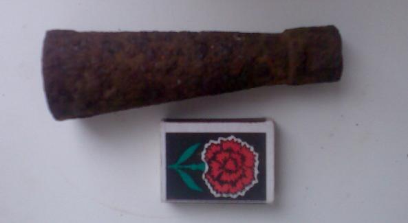 1)Колеги,в 5-10 см от пламягасителя был выкопан сей предмет.Имеется сужение в одном конце.Металы похожие.Вставлена какая-то "шпонка" !?