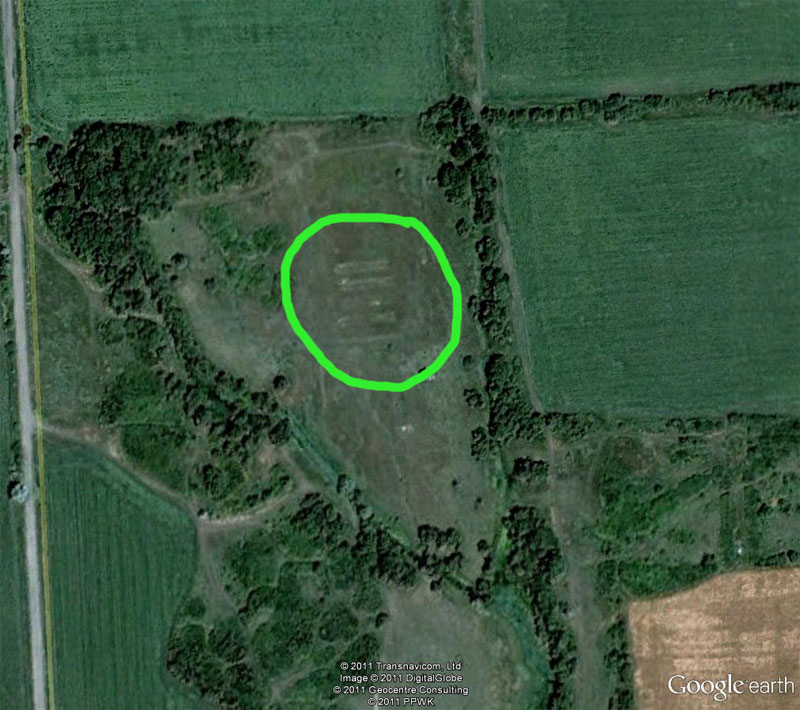Место не узнаю, НО - слишком правильная геометрия, непонятное назначение и неудачное расположение как для боевых позиций. Подобной формы видел скотомогильник.
