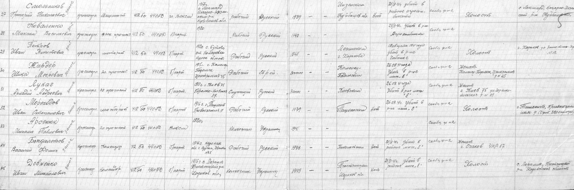 Re: Одесса... Я привел один лист из 20,и по нему выводы делать не корректно.Всего 21 августа в районе Агрокомбината и мыса "Е" погибло 7 комендоров не считая номерных...привожу еще один лист для наглядности.