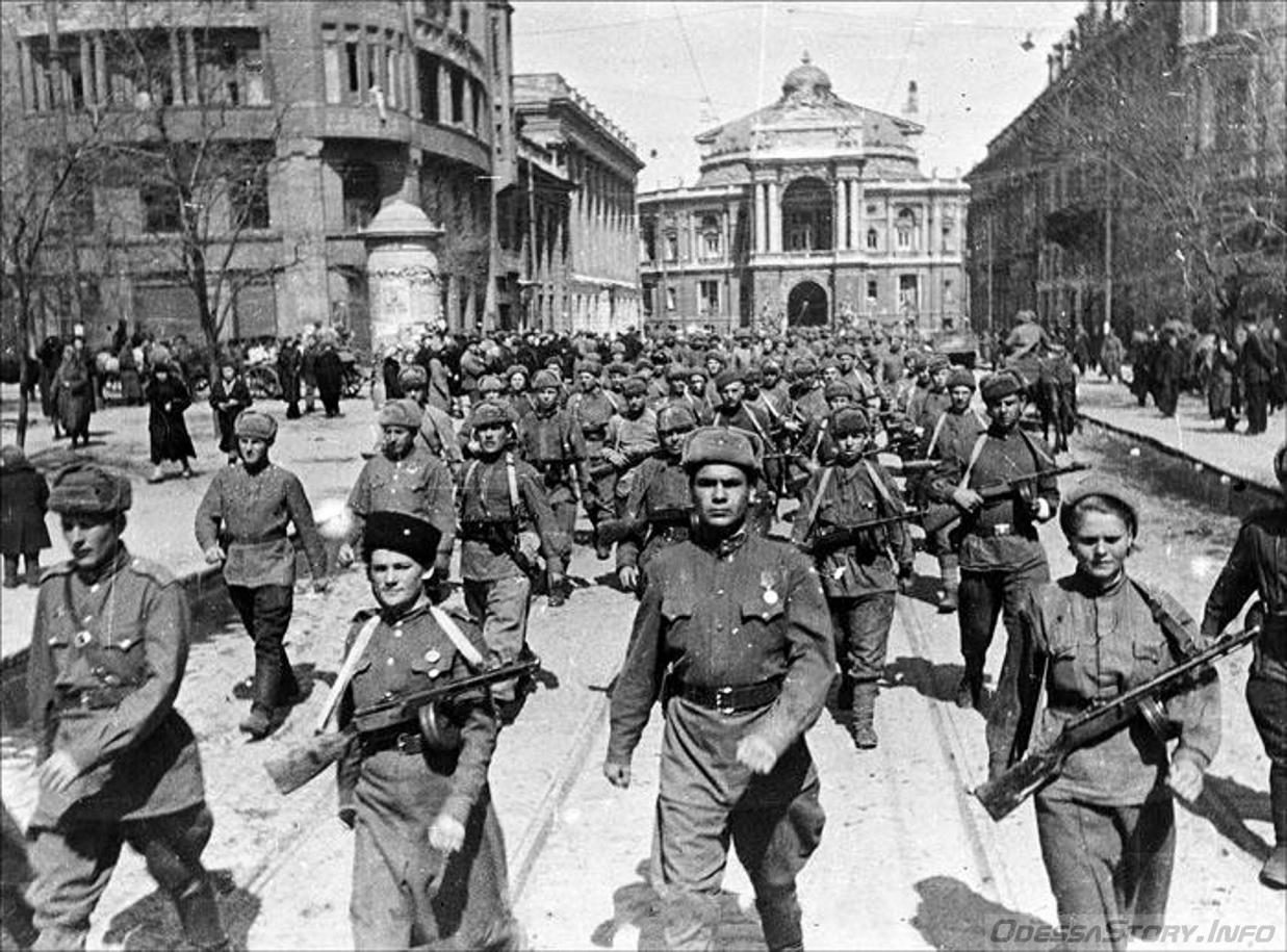 Re: Одесса... Знавал одного старика в 90-е. Фамилия была Шелудченко. Так он утверждал, что это он шагает впереди. Одессу он освобождал и морда у него тоже была широкая. Я тогда почти поверил.