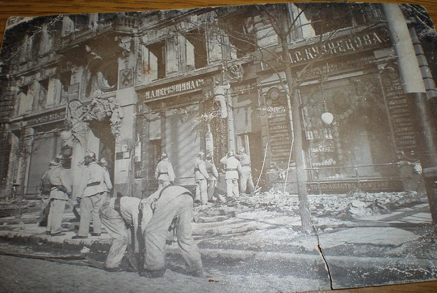 Понравилась одна открытка,запечатлившая пожар на 2 этаже в гостинице Пасаж,только вот не понятно с какого входа(со стороный Деребасовской или со стороны Советской армии).Прошу заметить головные уборы пожарников и магазины...довольно таки интерестно.