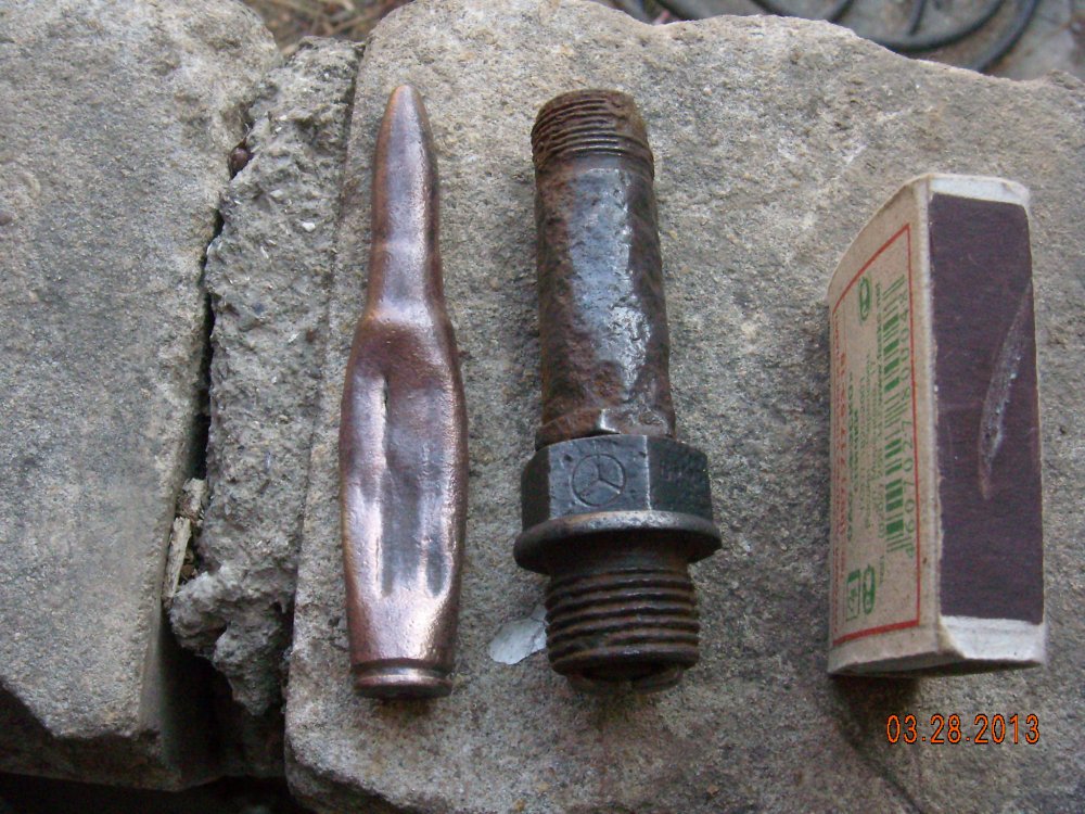 всем привет!откопал вродебы обычные патрон,свечу.почистил оказалось свеча от "мерса"(интересно от какого?).а патрон литой(вместе с пулей)типа муляжа.не подскажите ,что это?