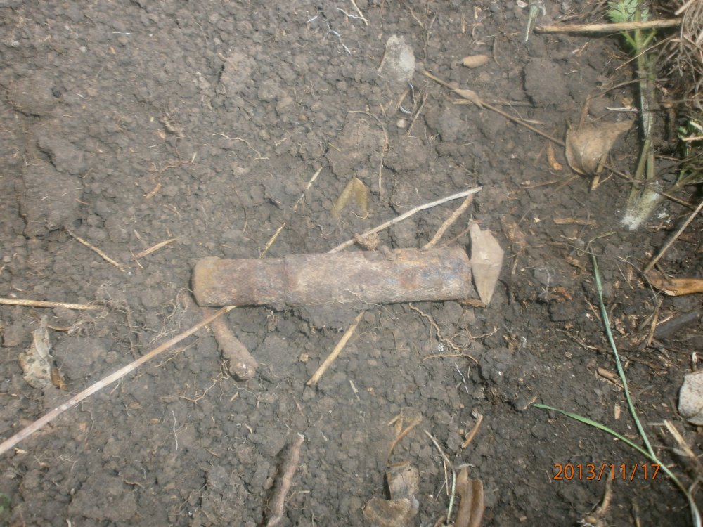 Поздравляю, антуражный, в стрельбе соревновались или пристреливали оружие... шлем немецкого образца М-35/40/42 или венгерского пр-ва, сами определите-- http://www.helmets.ru/cat_ger.htm..гильза поменьше от ТТ,ППШ или маузер(7.63Х25), гильза большая - плохо видно, там фланец больше чем тело в нижней части перед проточкой?