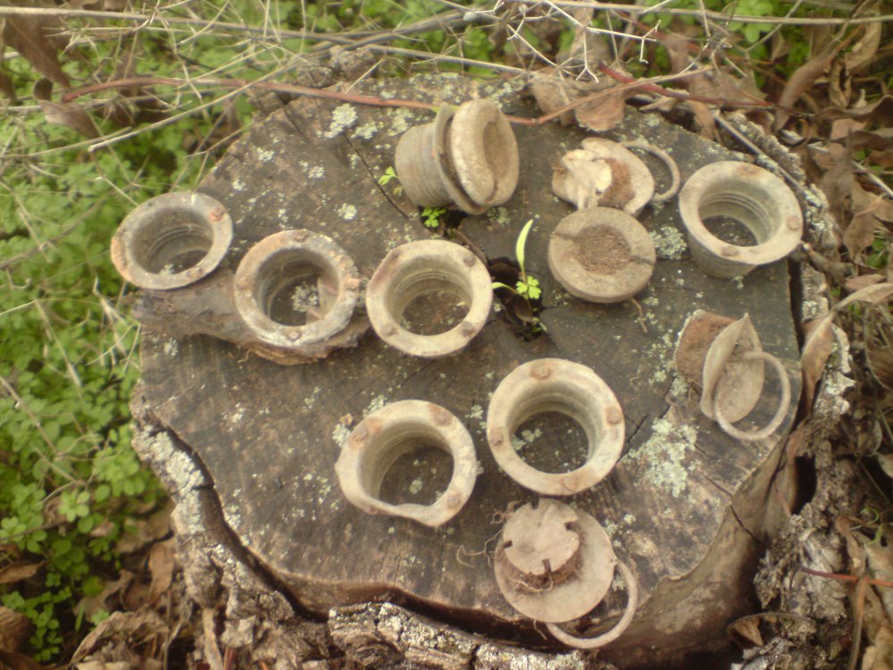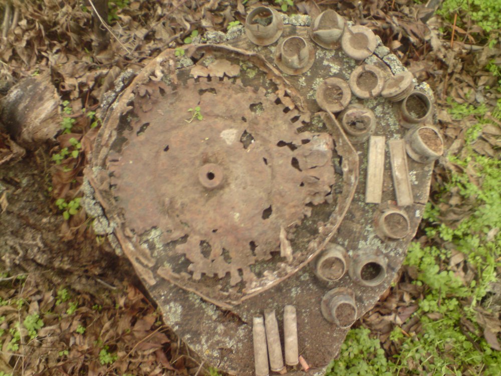 Копнул сегодня.Попались какие-то ячейки кольцевые с заглушками и пробки с кольцами,местами с ними дерево сохранилось,похоже на остатки ящиков от взрывачей или запалов.Вопрос знатокам:что сие может быть?