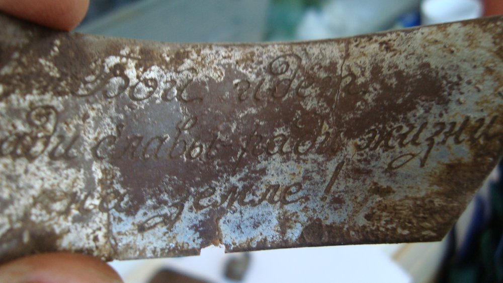 Восточный сектор.1 коп 24г 5 коп 38г.Не понятная лента, сперва хотел выбросить...а потом почистил и выступила , такая надпись...интересно где она находилась...может на портсигаре . Кому то встречалась подобная?.Ну и пуга, с каким то рисунком .подскажите, как лучше почистить.Лимонная кислота? Уксус?