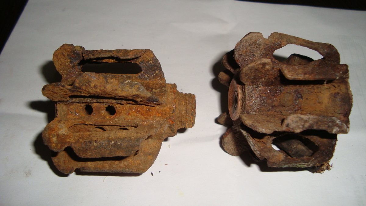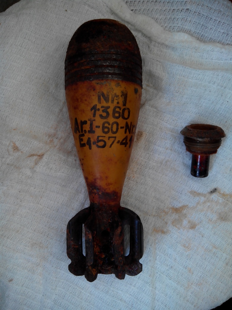 как как..шел с прибором ,махал..тут сигнал,начал копать,-сигнал сильнее,копнул по пояс,а там кабан лежит.Правда кабан голый,да и прилетело ему видно в голову,короче без каски и даже без настрела,клыки не коллекционные,врядли больше чем за 200 гривен их на райберте можно выставить.Назвонил на подковы на копытах,кабан видно у румын служил-на подковах надпись Regimentul Grăniceri..пограничный видимо.