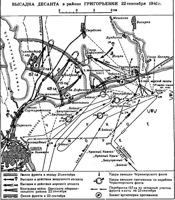 Враг, естественно, понимал, что серьезное нарушение работы порта могло стать началом конца Одесской обороны. В мемуарах Н. И. Крылова приводится выдержка из письма, посланного Гитлером Антонеску, в котором последнему давались советы, как быстрее овладеть Одессой: «Главное состоит в том, чтобы приблизиться к самому побережью с северо-востока, то есть в полосе действий Вашего 5-го армейского корпуса, чтобы можно было взять под сильный артиллерийский огонь портовые сооружения города...» Командование [84] ООР, привлекая к контрбатарейной борьбе все пригодные для этого средства, очень рассчитывало на огонь кораблей. Однако не так-то легко оказалось даже устанавливать точное расположение батарей, выдвигаемых противником в район между Большим Аджалыкским и Куяльницким лиманами: характер местности позволял хорошо их маскировать. (оказывается это был совет Гитлера обстреливать порт).
