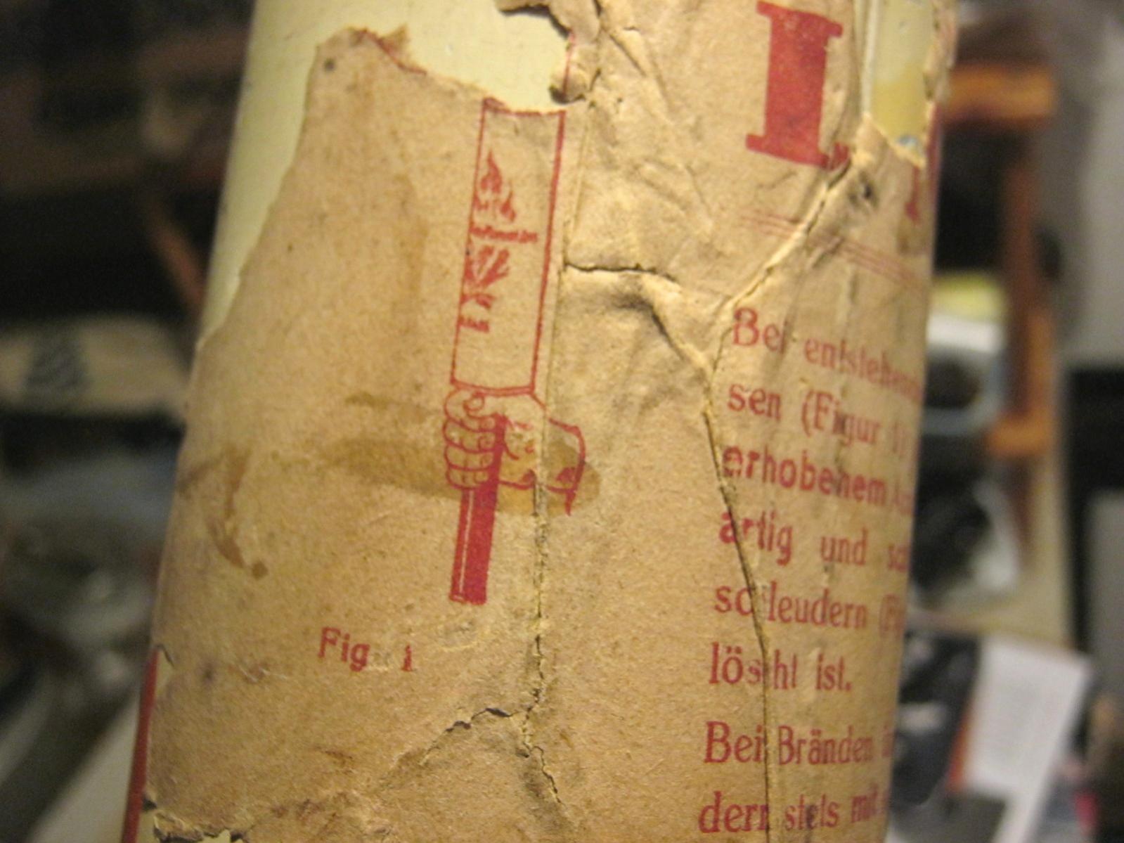 "Да ,не все то, что сверху - от Бога... И народ зажигалки тушил. И, как малая фронту подмога, Мой песок да дырявый кувшин..." В. Высоцкий "Баллада о детстве". Нашел интересную и редчайшую вещь. Порошковый огнетушитель , гражданская версия. Для Люфтшутца. Название красивое - Bomba de mano, "Ручная граната". Дергаешь за кольцо на крышке - и высыпающейся смесью тушишь очаг возгорания. Висели на стенах - на чердаках, в бомбоубежищах, в квартирах. Не сохранилось ,видать, ни одного , кроме.... Мой - с чердака и не распечатанный, полный ! Весит 2,5 кг. Длина 60 см. Короче - вещь для Музея! Цена - 140 евро + почта.