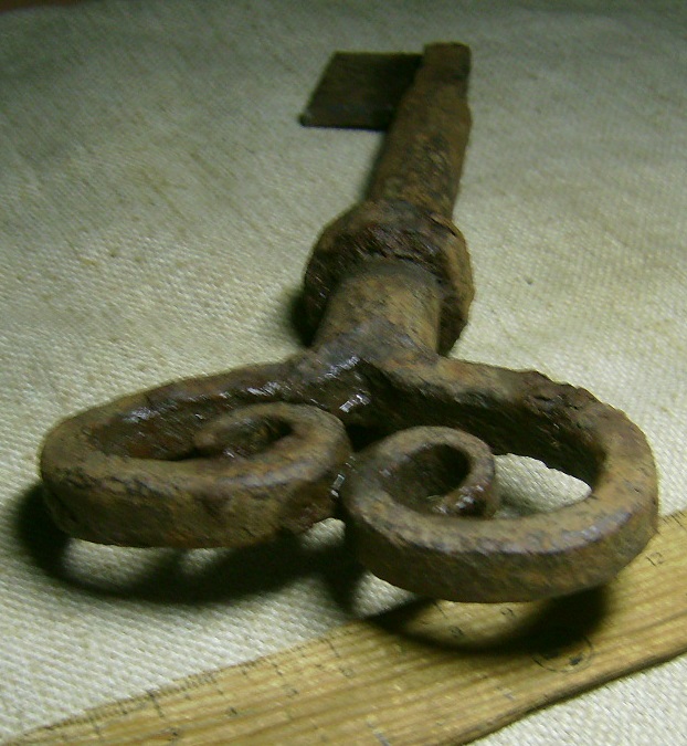 Доброго. Ключ для открывания внутреннего засова на дверях чего-либо важного - амбара, например. Думается век 19-й. Изделие местного кузнеца.