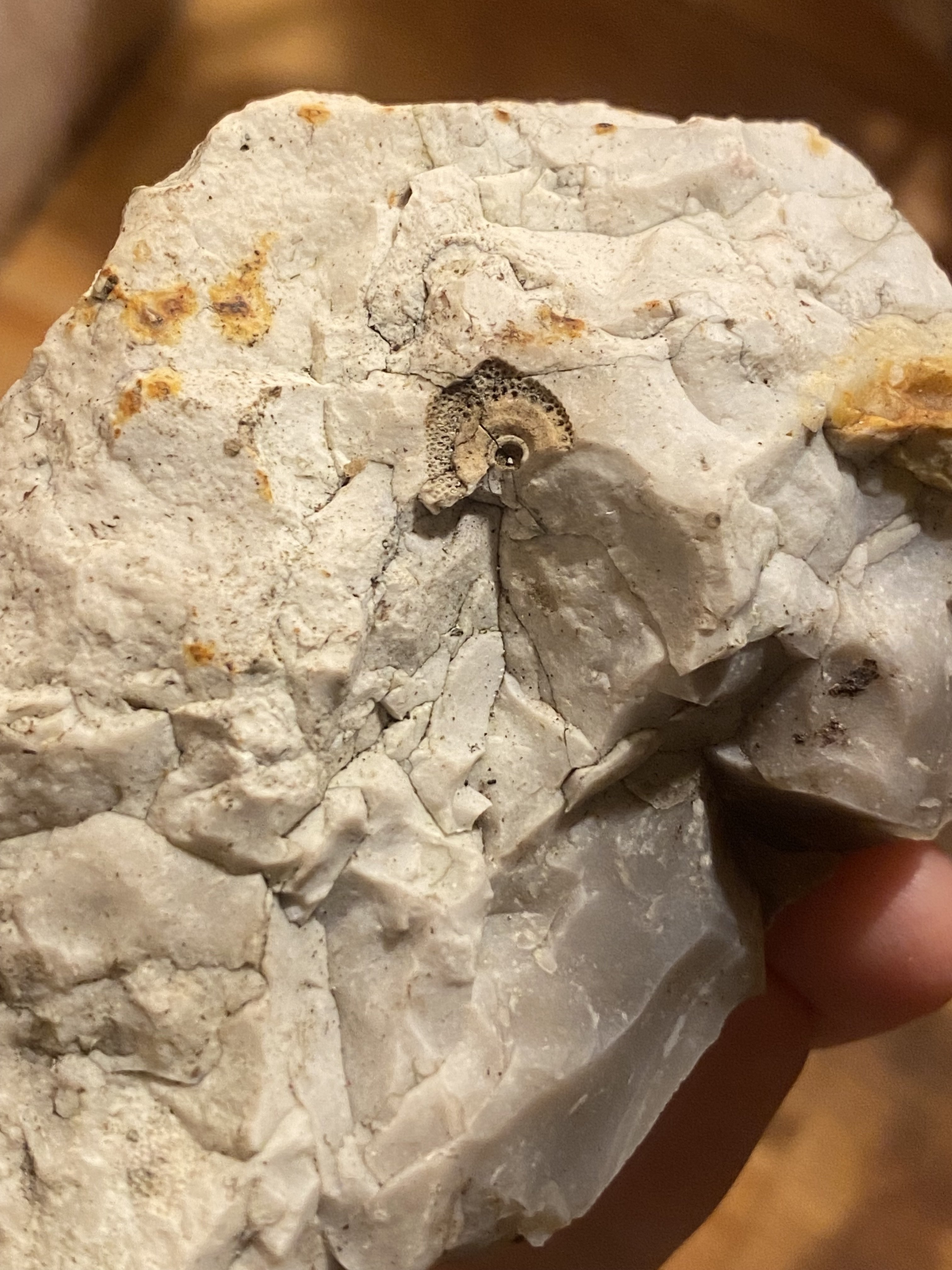 Приветствую. Возможно офф-топ, но не нашёл раздела по окаменелостям, а за пределы Райберта на другие форумы не хожу. Да и уверен, что моя находка не супер-редкость, поэтому определить в силах форумчан. Сам камень - кремень, но что за округлое вкрапление? Найден в окрестностях Берлина.